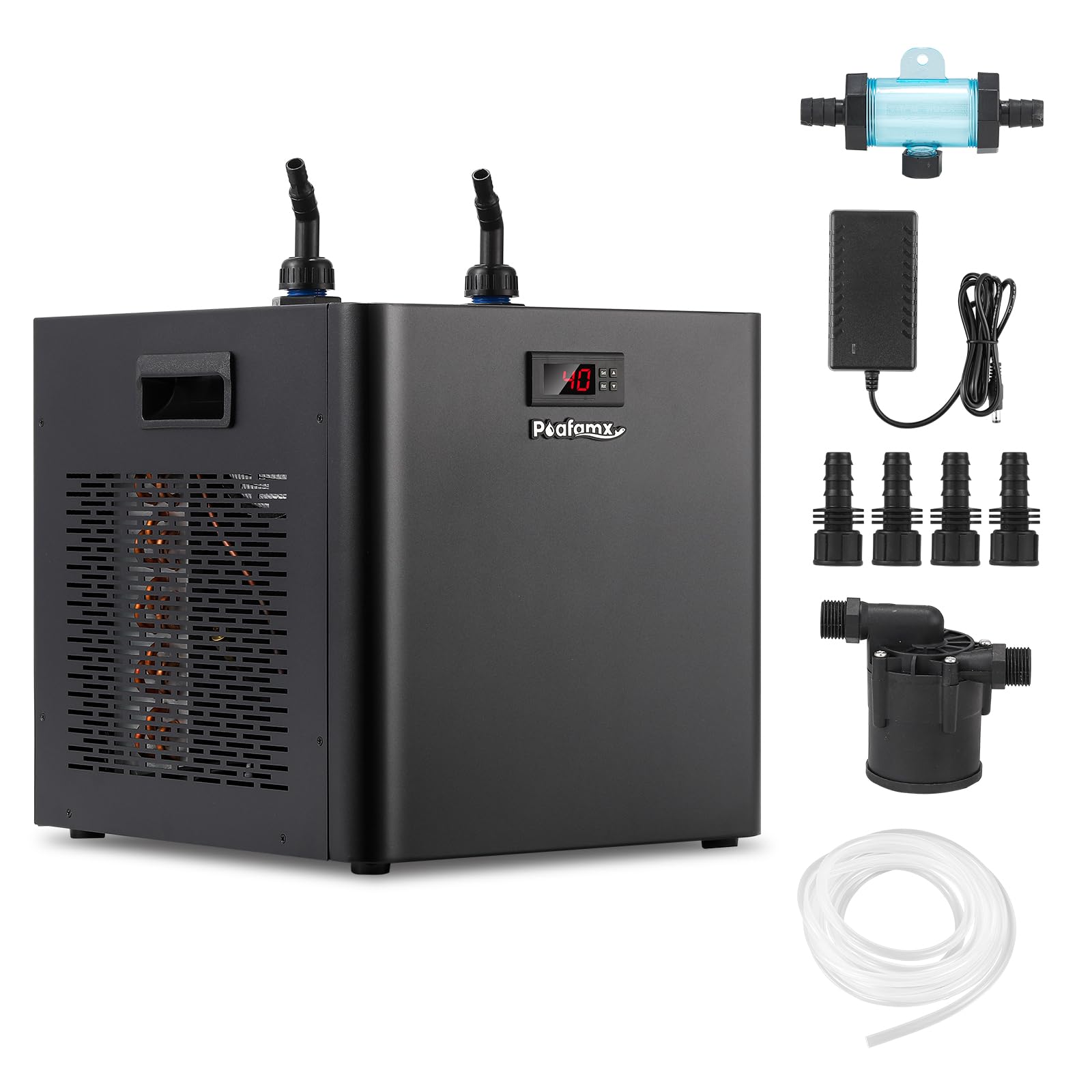 Poafamx 1/2 PS Wasserkühler für Kaltwasserbecken, Eisbad-Kühlset mit Filter, Schlauch, Wasserpumpe, 132-Gallonen-Wasserkühlsystem für Kaltwasserbecken, leiser Kaltwasserkühler für Sportler