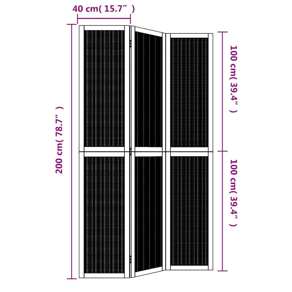 3-tlg. Raumteiler Braun Massivholz Paulownia