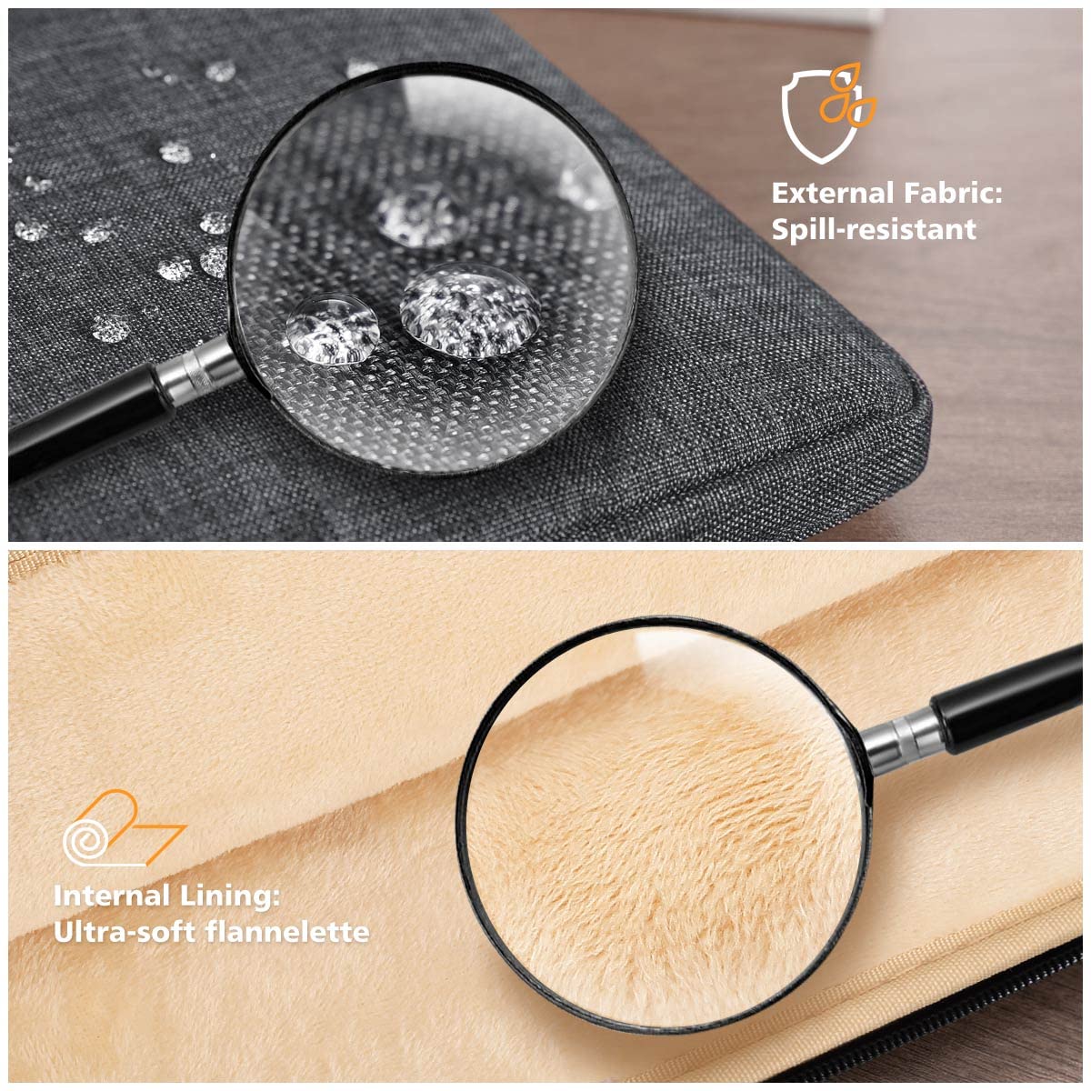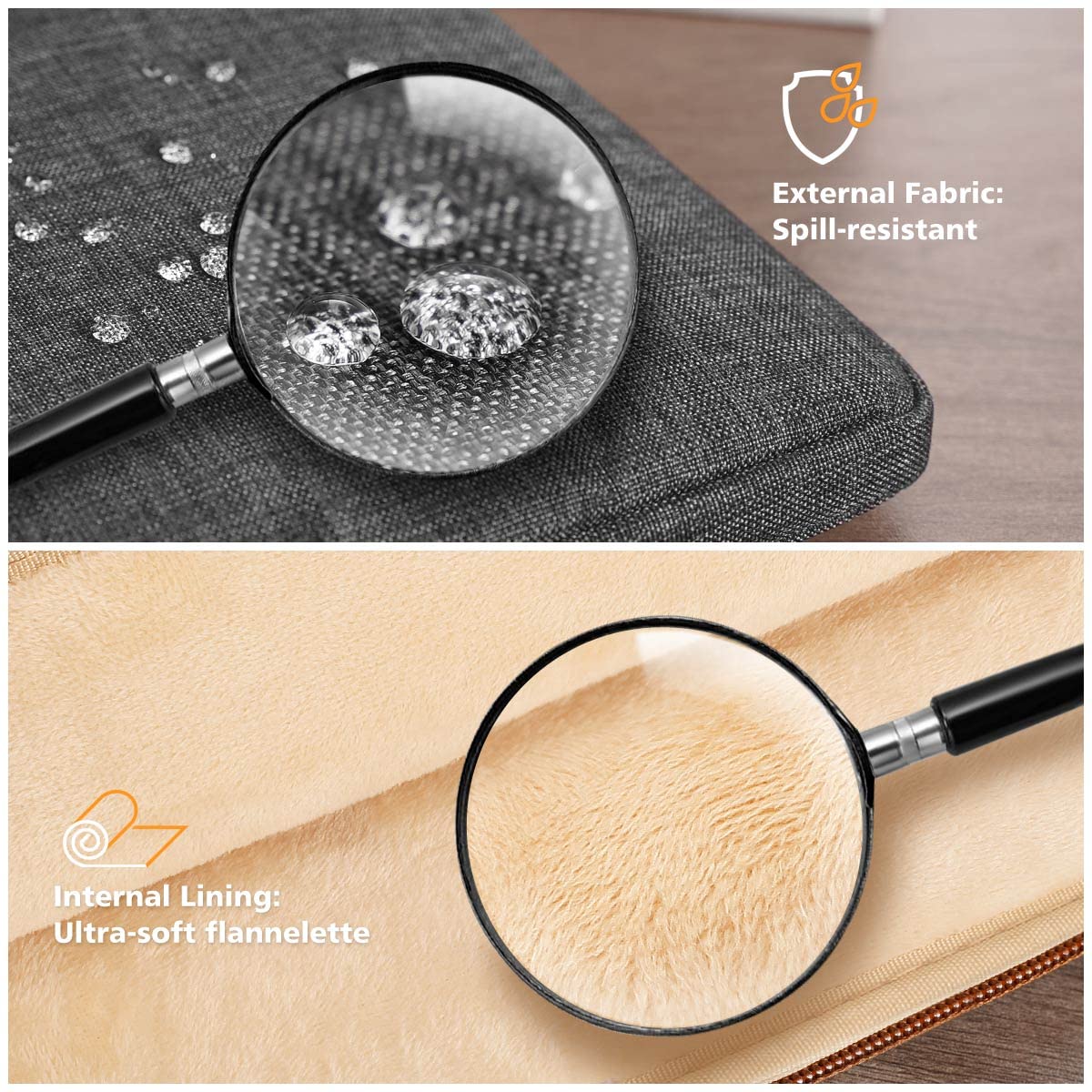• Water-Resistant & Protective Fabric - Made of soft water-resistant surface material for rain absorption, fluffy thick fleece fabric lining for shock absorption, protect your computer perfectly.
