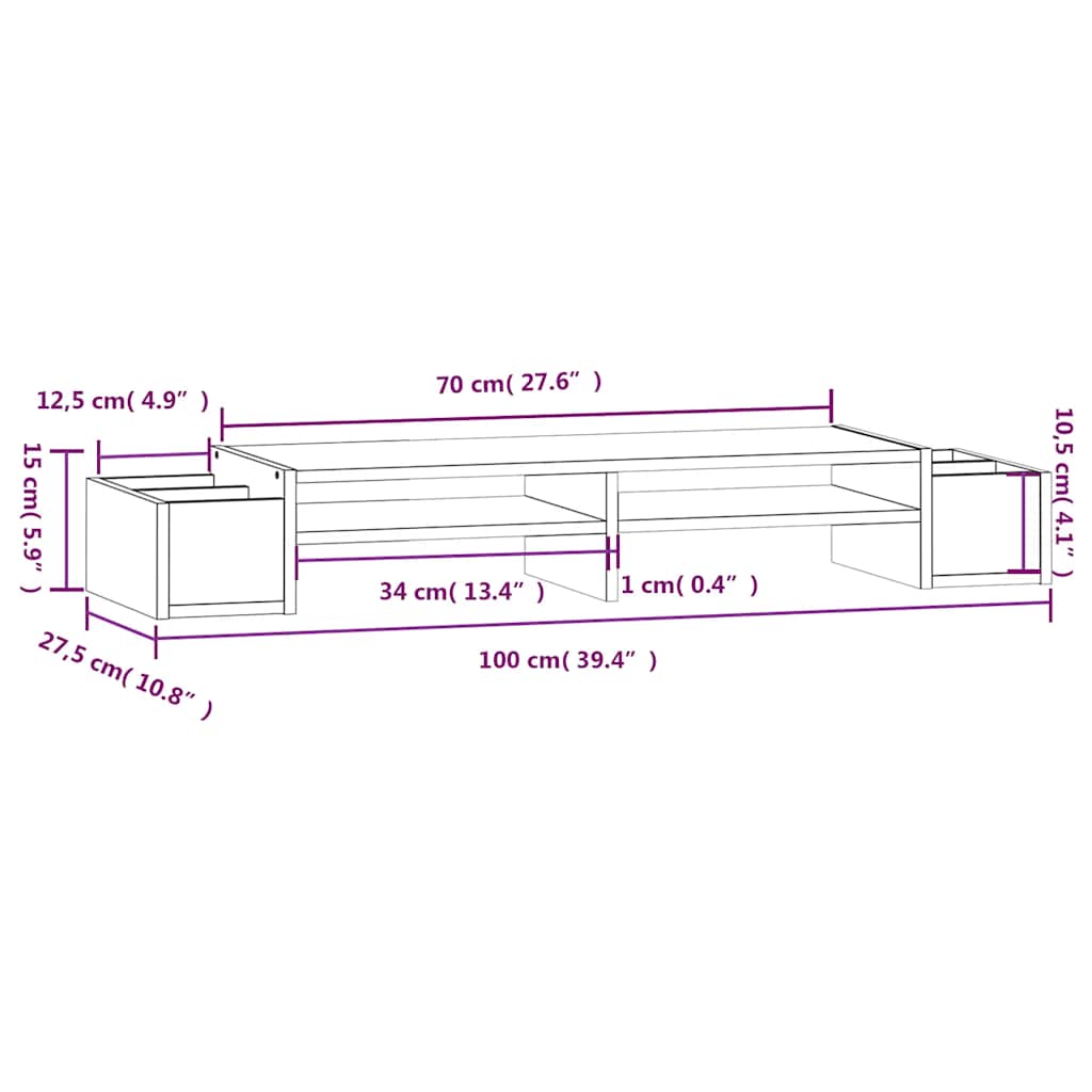 Mit seinem minimalistischen Design verleiht dieser klassische Monitorständer aus Holz deinem Wohnraum eine angenehmen Note. Massives Kiefernholz: Massives Kiefernholz ist ein wunderschönes Naturmaterial. Kiefernholz weist eine gerade Maserung auf und die Aststellen verleihen dem Material seine charakteristische, rustikale Optik.Stabiler Rahmen: Der Holzrahmen sorgt für Robustheit und Stabilität.Stauraum: In den 4 seitlichen Ablagefächern und unter dem Monitorständer kannst du Tastatur, DVD-Player, Spielkonsole, Receiver, Medienträger, Notizbücher, Stifte und ähnliche Gegenstände verstauen.Stressreduktion: Dieser Schreibtischaufsatz kann als Ständer für Monitore und andere Multimedia-Geräte verwendet werden. Die Erhöhung deines Bildschirms entlastet Rücken und Nacken bei der Arbeit am PC. Hinweis:Jedes Produkt wird mit einer Montageanleitung in der Verpackung für eine einfache Montage geliefert.