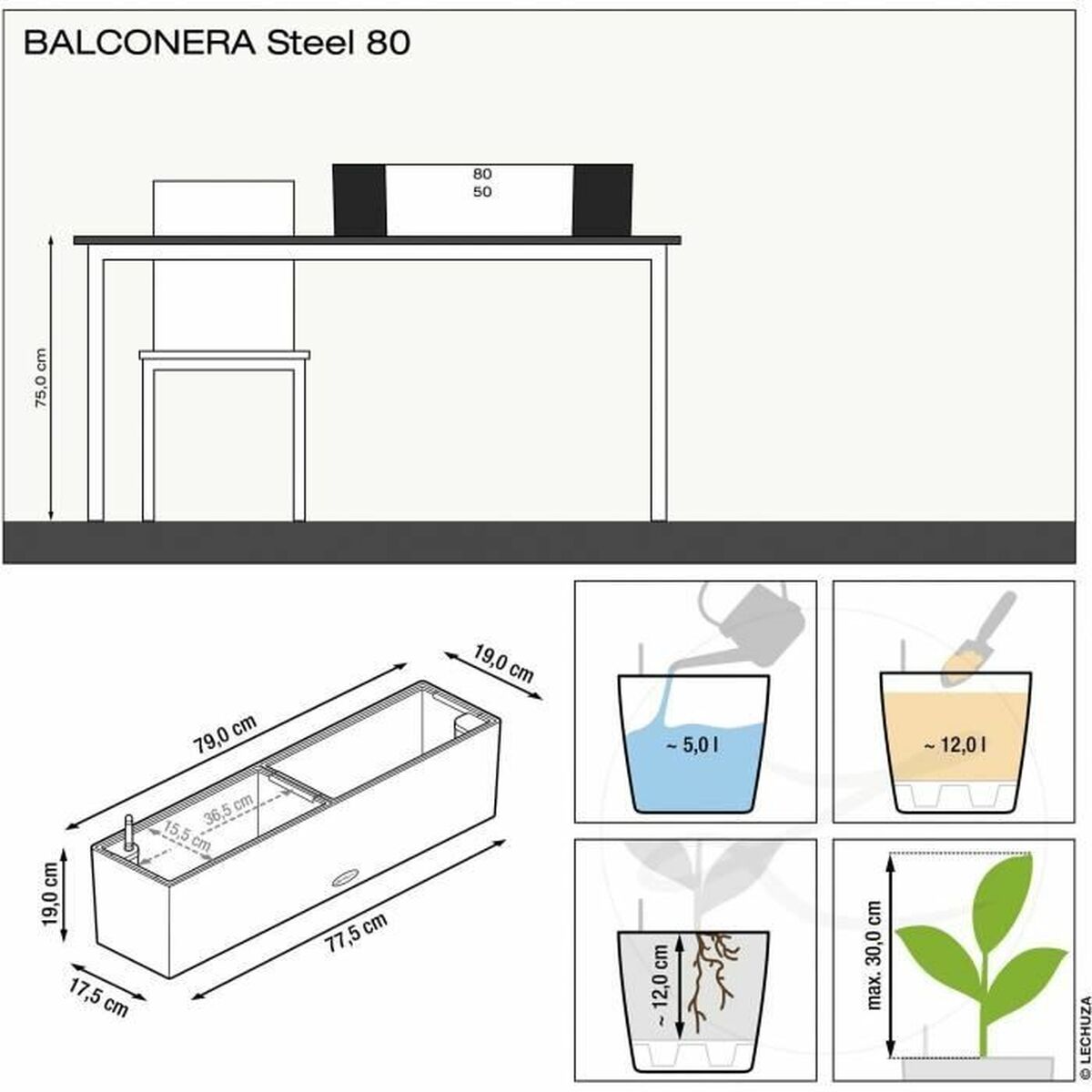 Self-watering flowerpot Lechuza Silver 79 x 19 x 19 cm Rectangular