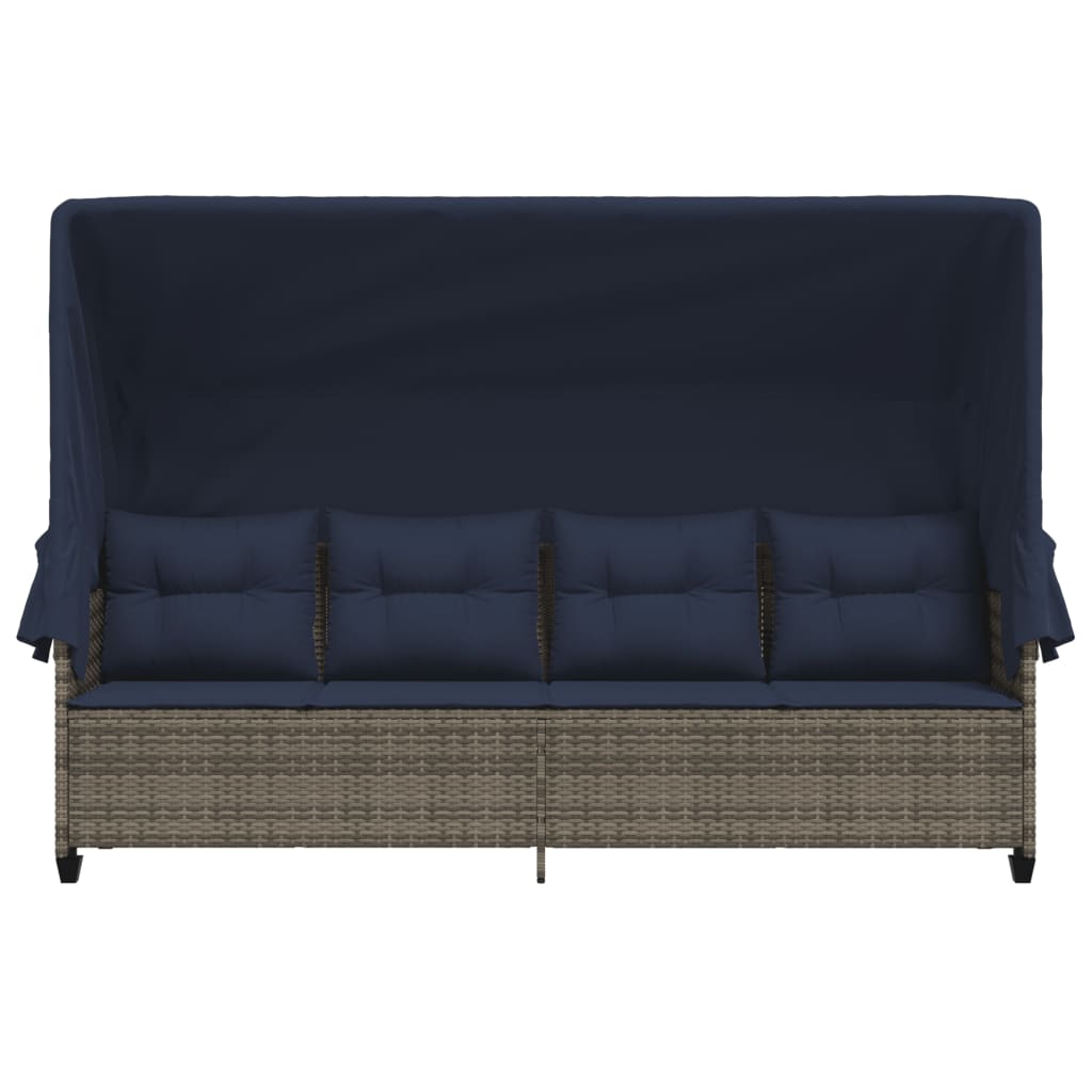 Sonnenliege mit Dach und Kissen Grau Poly Rattan