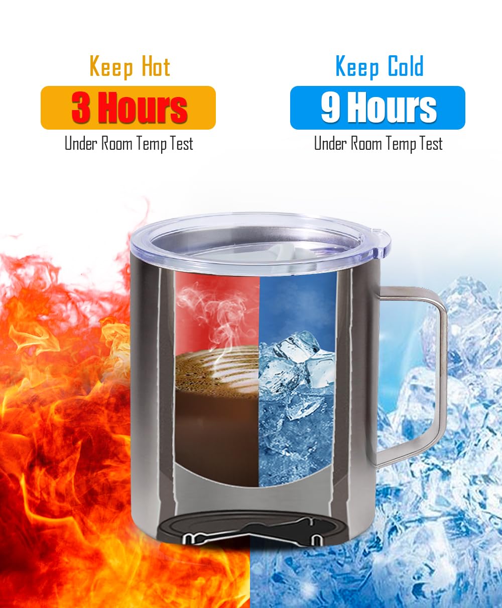 SUNWILL Vacuum Insulated Coffee Mug with Lid Great for all kinds of hot and cold beverages, such as coffee, beer, cocktails and juice etc. Best choice for outdoor, camping, free drinking at beach, by the pool or in a boat. Double-Wall Vacuum insulated thermal design keeps your drinks cold for 9+ hours or hot for 3+ hours. The insulation also protects your hands from the temperature of beverage. The temperature of our hands does not affect that of the drinks. Unbreakable premium material. Sweat proof. Eco-friendly. Safe choice for adults and children. Enlighten your life and work. This insulated coffee mug is an exquisite gift for your family, your friends, and yourself! Specification: Designs: Vacuum Insulated Coffee Mug Mug material: 18/8 304 Grade stainless steel Lid material: AS Color: Rose Gold Capacity: 14 oz for everyday life Size: 3.4 x 4.1 inches Quantity: 1pc Package: Gift Box Helpful Hints: The drink hole is on the top of lid with sliding cover. Please note it is to keep drinks contained and prevent heat/ cold from escaping. It is not leak proof. Wash with non-scratch sponges or cloth in warm water. Handwash recommended. Not microwavable. Keep children away from the coffee mug when it is filled with hot liquid.