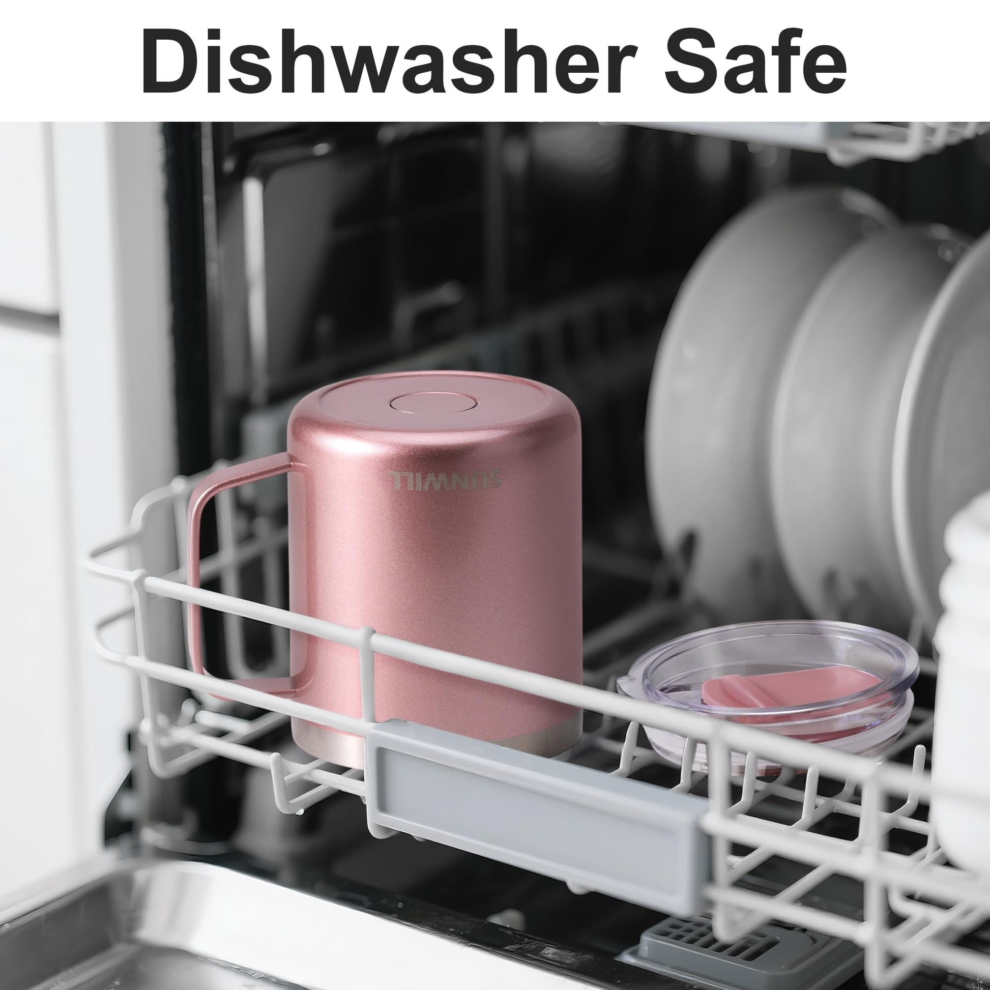 SUNWILL Travel Coffee Mug with Lid, Insulated Tumbler with Handle, 14 oz Stainless Steel Cup for Ice, Water, Tea, Rose Gold