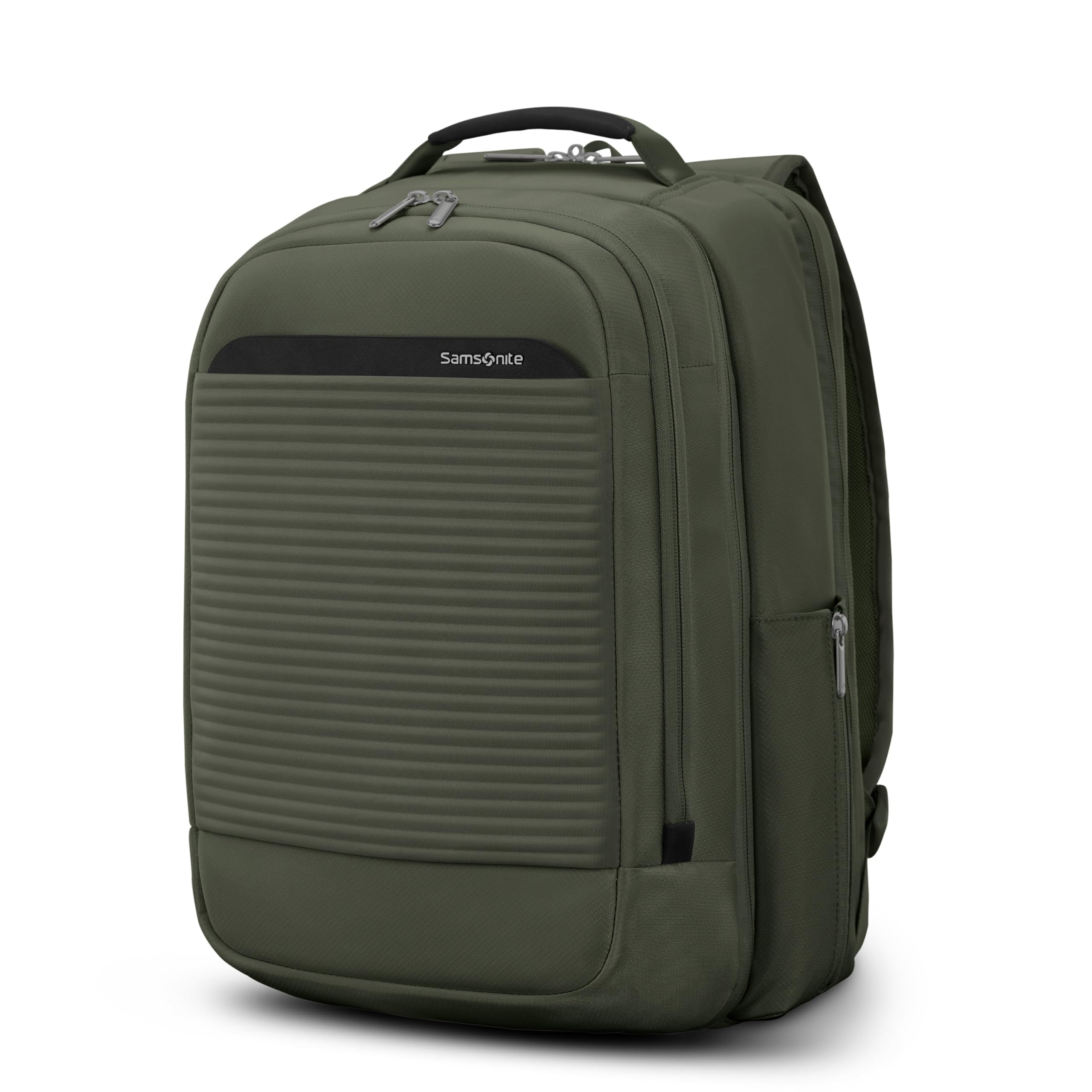 Samsonite Paralux 2-in-1 Reiserucksack, umwandelbar in Haupttasche + Notfalltasche, flach zusammenfaltbar, StackIt™-Gurt, Laptopfach & integrierter AirTag™-Halter – Business- & Abenteuerreiserucksack – Olivgrün
