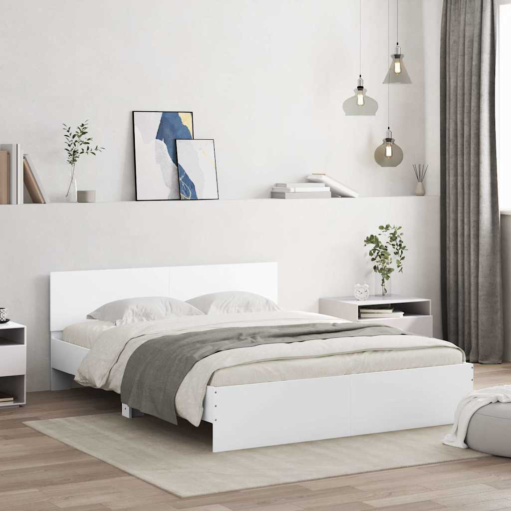 Bettgestell mit Kopfteil und LED-Beleuchtung Weiß 150x200 cm