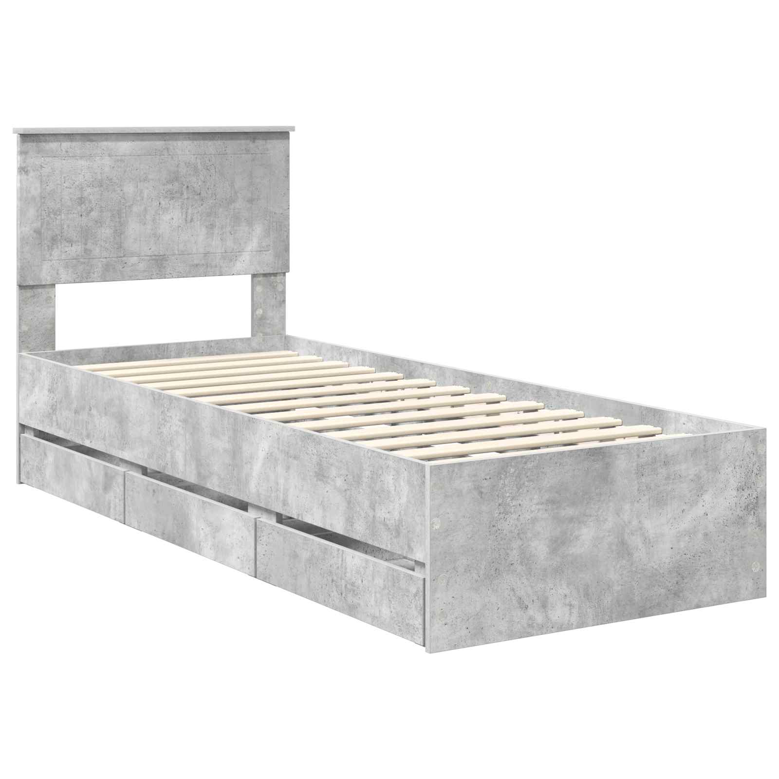 Bettrahmen mit Kopfteil Beton Grau 75 x 190 cm Ingenieurs Holz