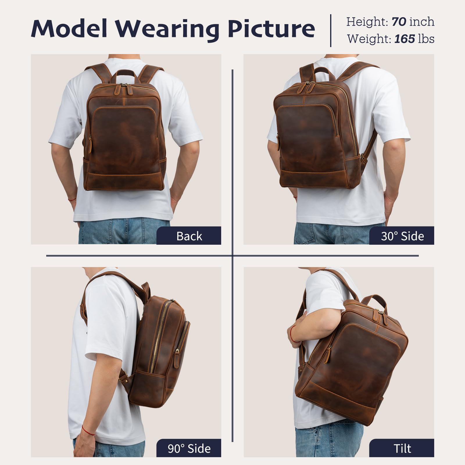 Miracttld Lederrucksack für Herren, 15,6" Laptop-Rucksack, 100 % Madagaskar-Vollnarbenleder, braun, mittlere Größe