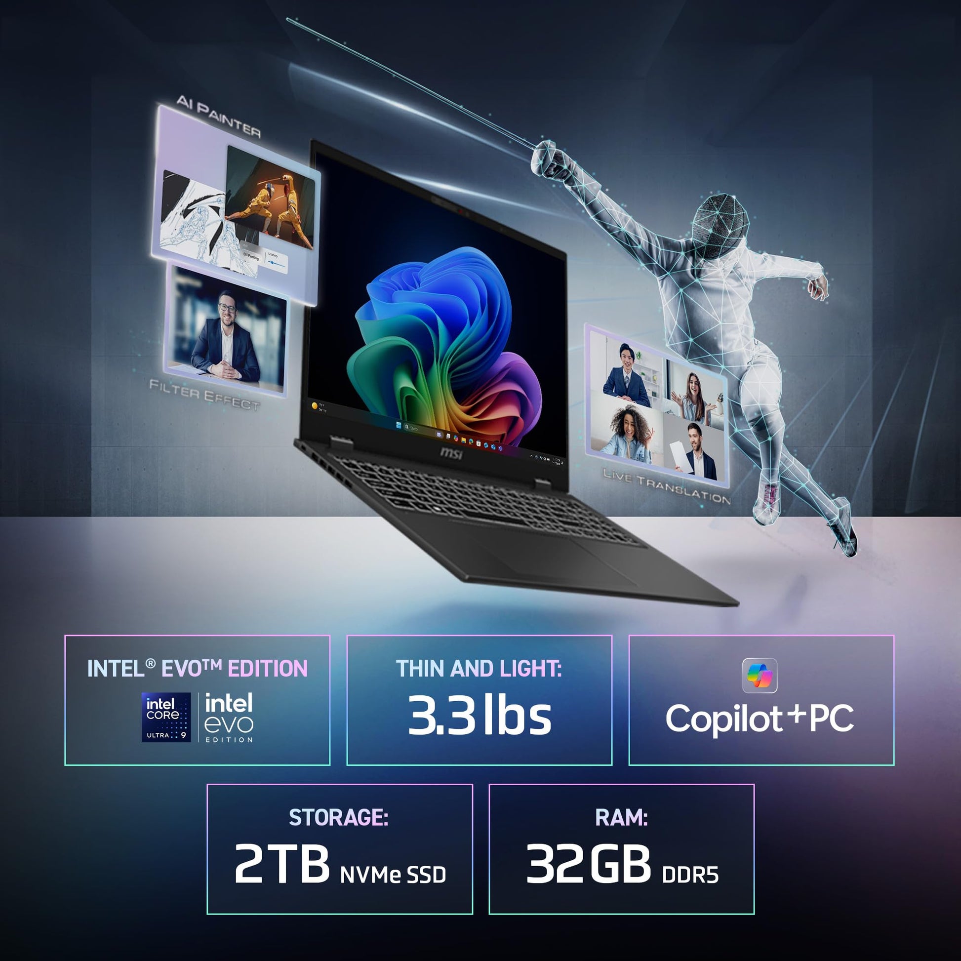 MSI Prestige 16 AI+ Evo 16" UHD+ OLED Laptop: Intel Ultra 7-258V, Intel Arc Graphics, 32 GB DDR5, 2 TB NVMe SSD, HDMI, Wi-Fi 7, Windows 11 Pro: Stellar Gray B2VMG-058US