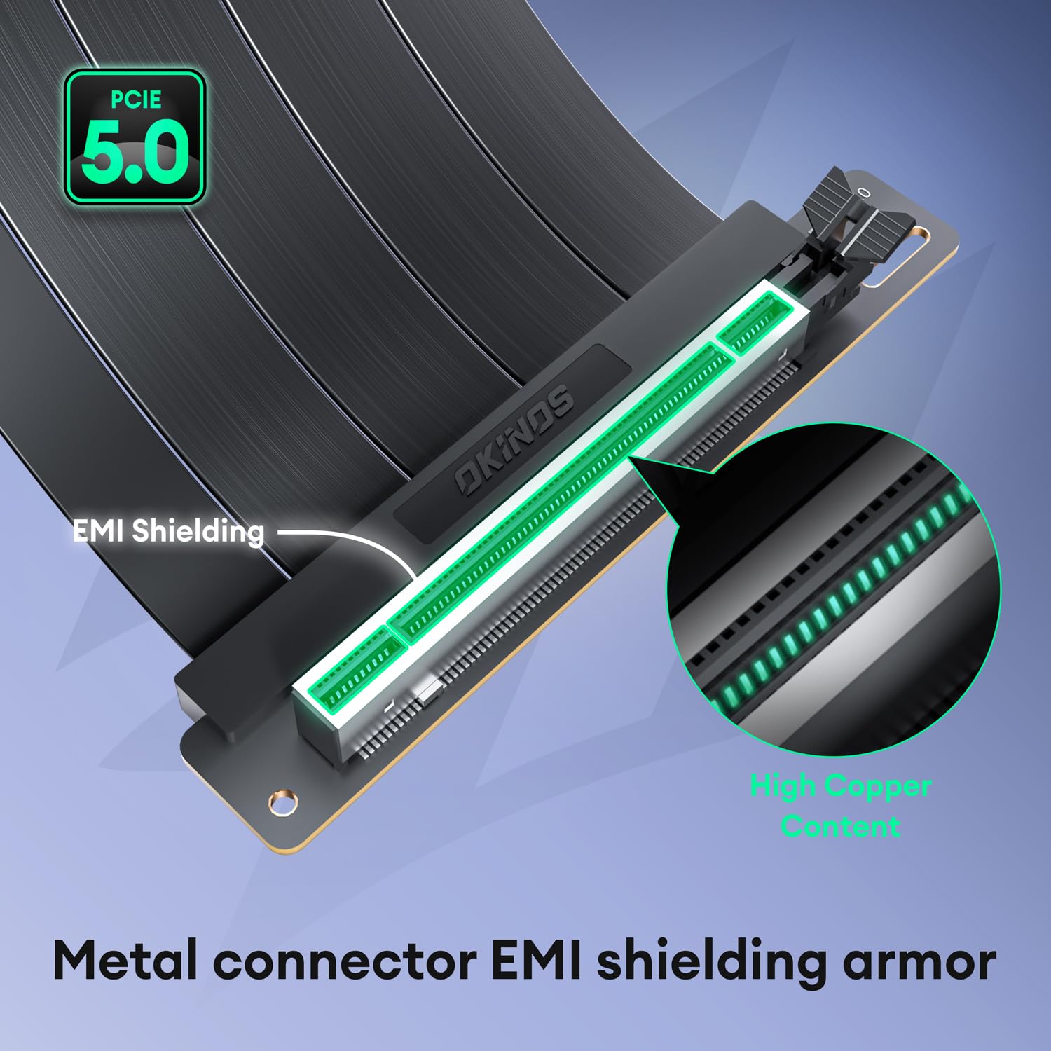 Okinos PCIe 5.0 Riser-Kabel, 64 GB/s für RTX 5090 und RX 9070 GPU, PCIe-Erweiterungskarte, abwärtskompatibel mit PCIe 4.0 und 3.0, 200 mm, Schwarz