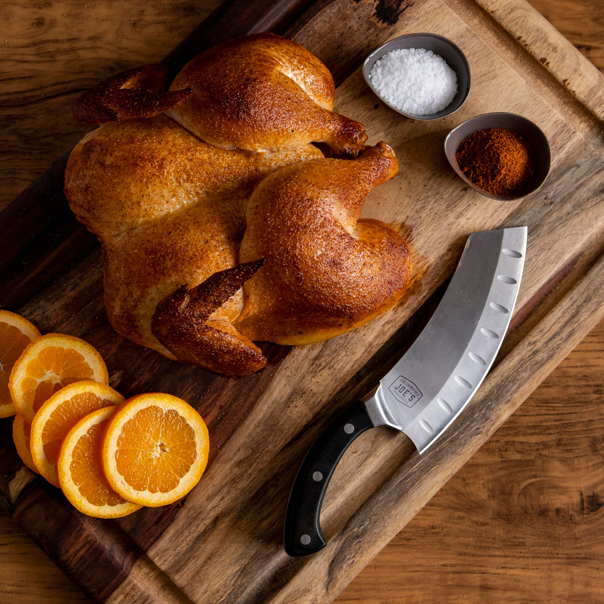 Das Oklahoma Joe's® Hackmesser mit durchgehendem Erl aus Kohlenstoffstahl ist robust genug, um große Fleischstücke zu durchtrennen, und gleichzeitig präzise genug, um Gemüse fein zu hacken. Dieses 2-in-1-Messer verfügt über eine lange, breite und genoppte Klinge, mit der sich eine Vielzahl von Lebensmitteln mühelos schneiden lässt. Die Schutzhülle ermöglicht einen einfachen Zugriff und eine platzsparende Aufbewahrung.