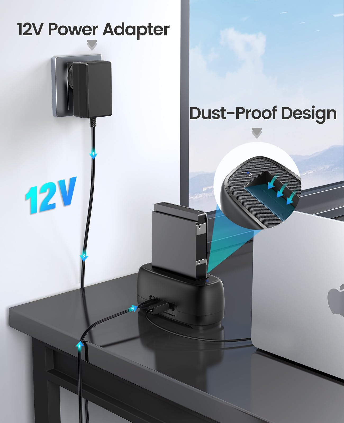 ORICO Externe Festplatten-Dockingstation für 2,5/3,5 Zoll HDD/SSD, USB 3.0 zu SATA-Festplatten bis zu 22 TB, unterstützt UASP, 12-V-Netzteil – DD18