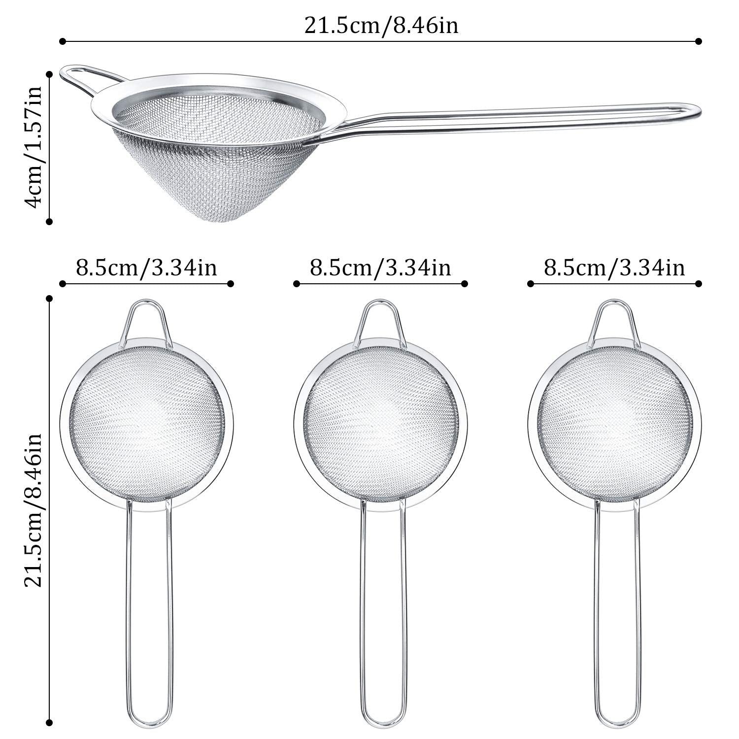 Patelai 3-teiliges Teesieb-Set: Cocktailsieb, Edelstahl, feinmaschiges Sieb, konisches Lebensmittelsieb, loser Teefilter, praktisches Barsieb-Werkzeug