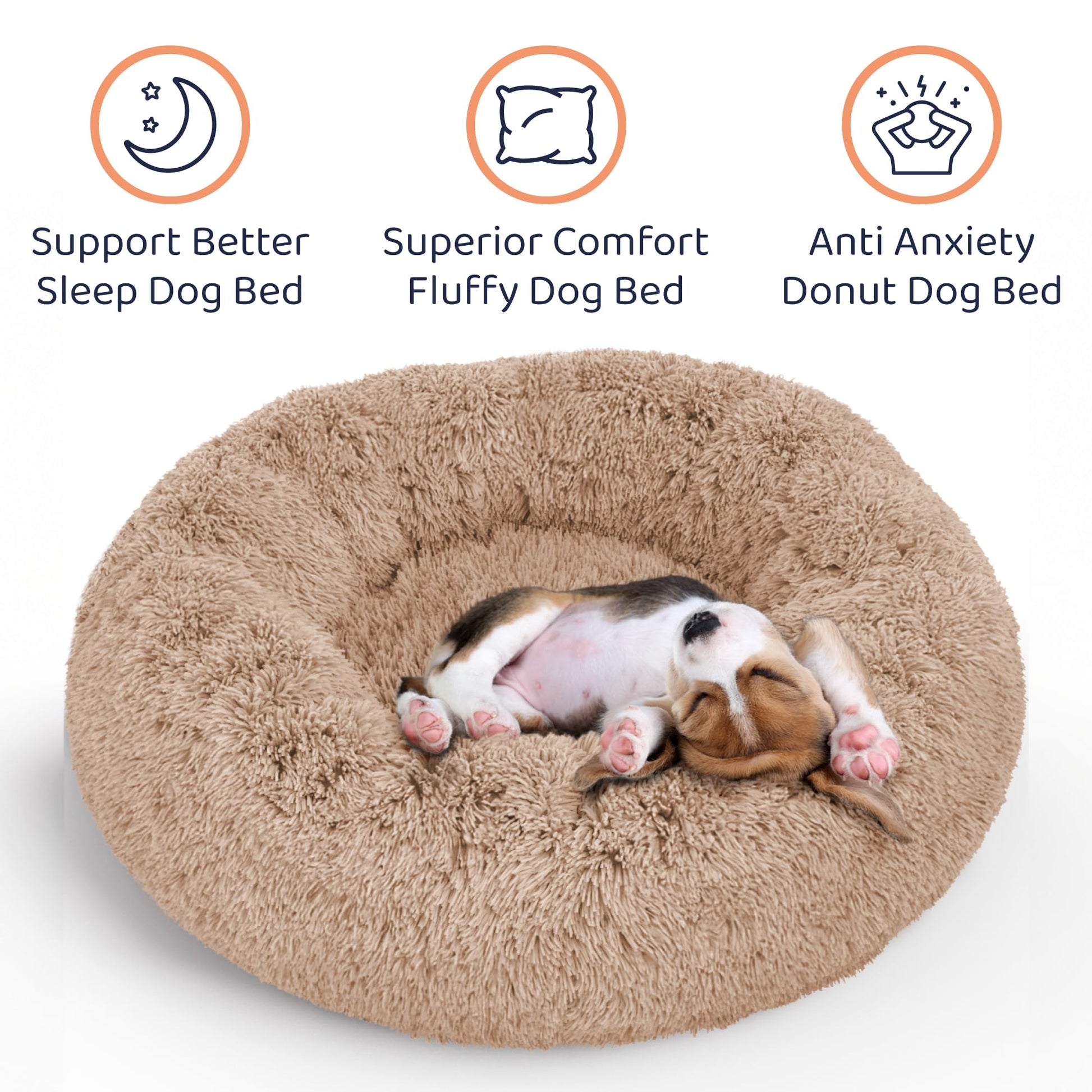 Petloox Donut-Hundebett – Premium-Komfort zur Linderung von Angstzuständen – Flauschiges und beruhigendes Design mit ultraweicher Unterstützung | Gemütliches rundes Hundebett in superweicher Kreisform (Größe M Kamel)