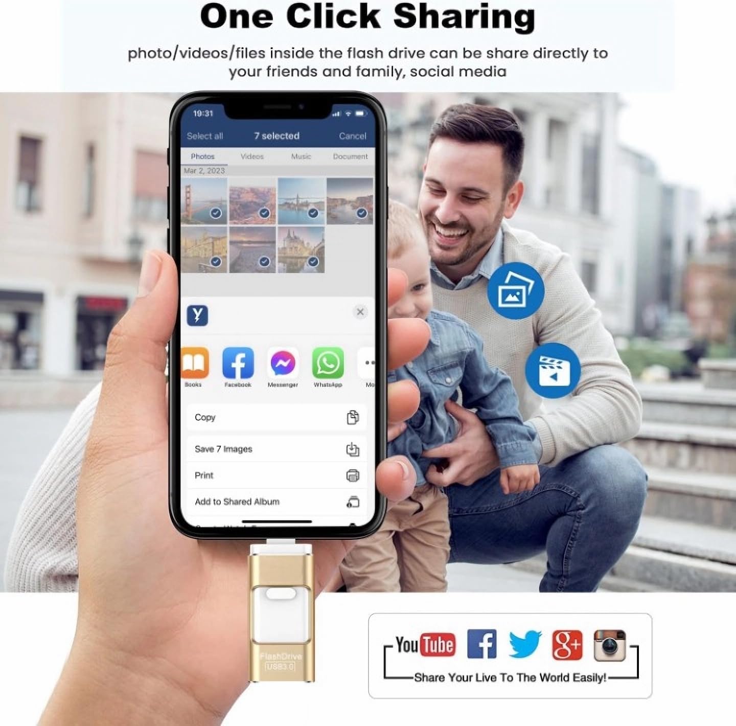 Phoxfer RecovStick 64 GB für iPhone 4-in-1 | Externer USB-Stick von PhotoTek für Mobiltelefone, iPads und Macs | Speicherplatz für Daten, Fotos und Videos | Schnellzugriff mit einem Klick, Gold