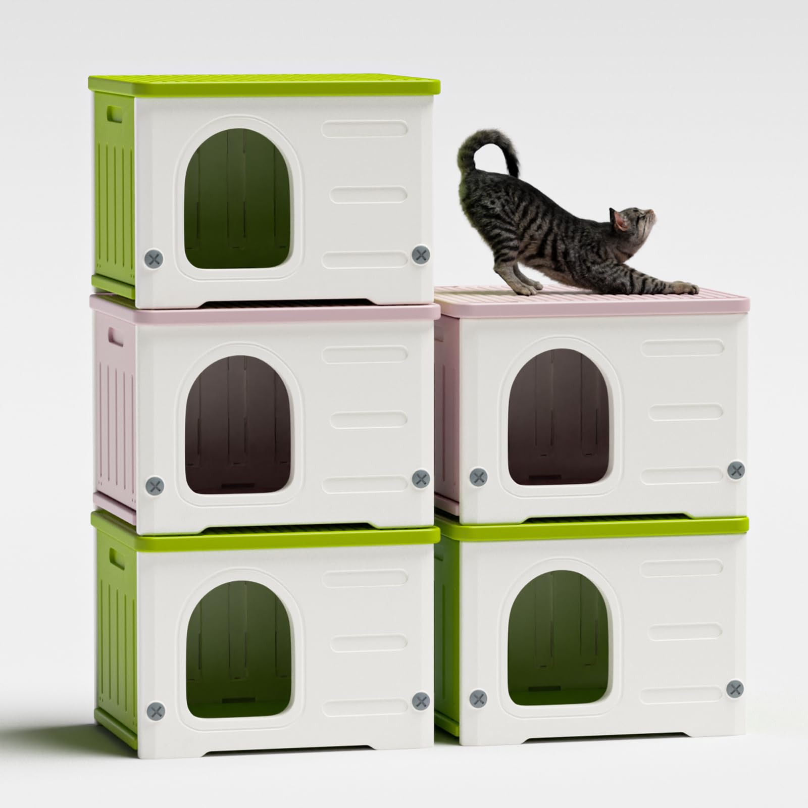 Katzenhaus aus Kunststoff für den Innen- und Außenbereich, stapelbar, wetterfest, wasserdicht, erhöht, Schutz für Wildkatzen, Innenkatzenhaus (Grün)