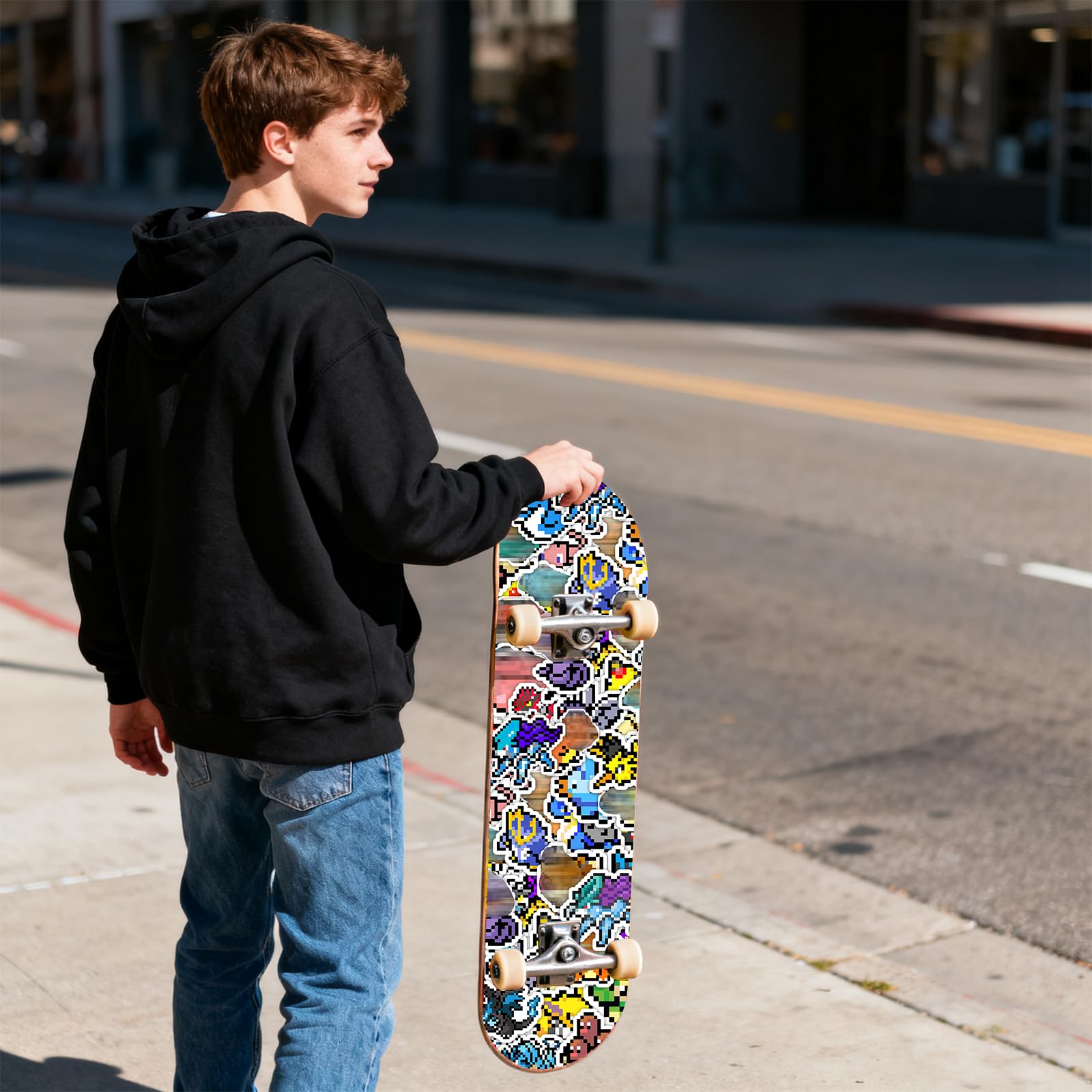 Verwende es für deinen Laptop, Graffiti, Wände, Skateboards, Bilderrahmen, Snowboards, Kühlschränke, Fenster, Gitarren, Helme, Koffer oder Taschen; und bitte setze es nicht längere Zeit der Sonne aus; lass deiner Fantasie freien Lauf.