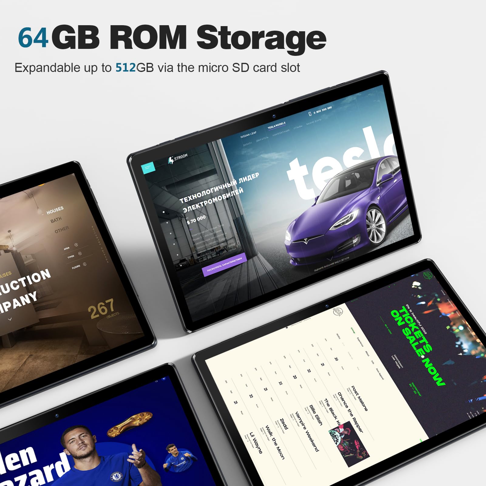 PRITOM Tablet 10 Zoll, 64 GB, Android 13, HD-IPS-Bildschirm, Dual-Kamera, WLAN, Bluetooth, 6000-mAh-Akku, Touch10 Tab GMS-zertifiziert