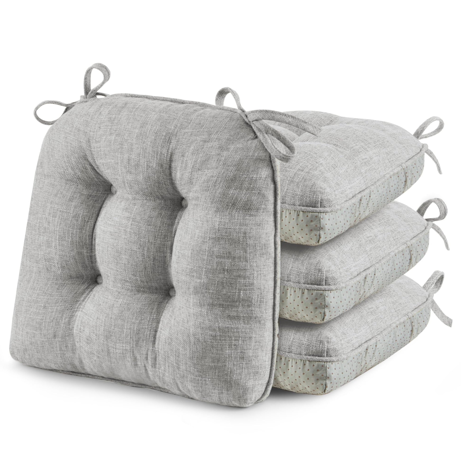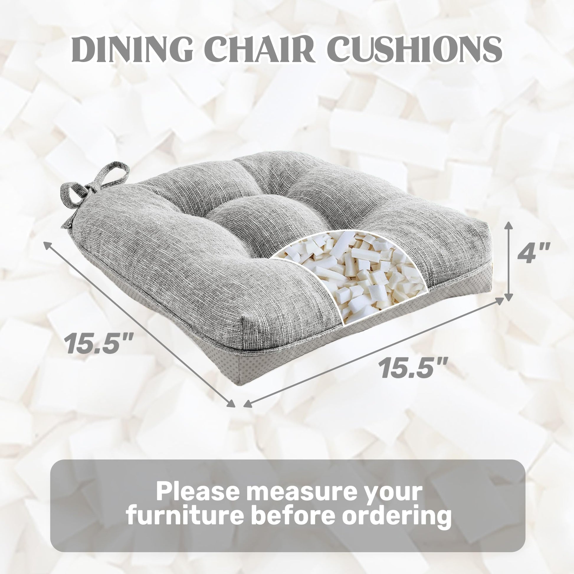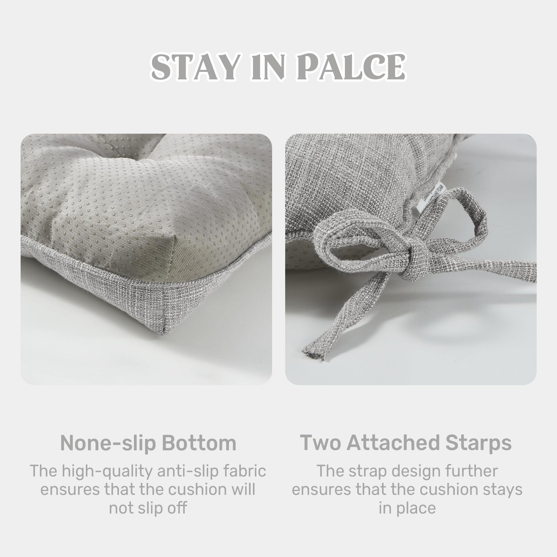puredown® Stuhlkissen für Esszimmerstühle, gesteppte Memory-Schaum-Stuhlkissen mit rutschfester Unterseite, Küchensitzkissen mit Bändern, waschbares 4er-Set, 39,4 x 39,4 x 10,2 cm, Hellgrau