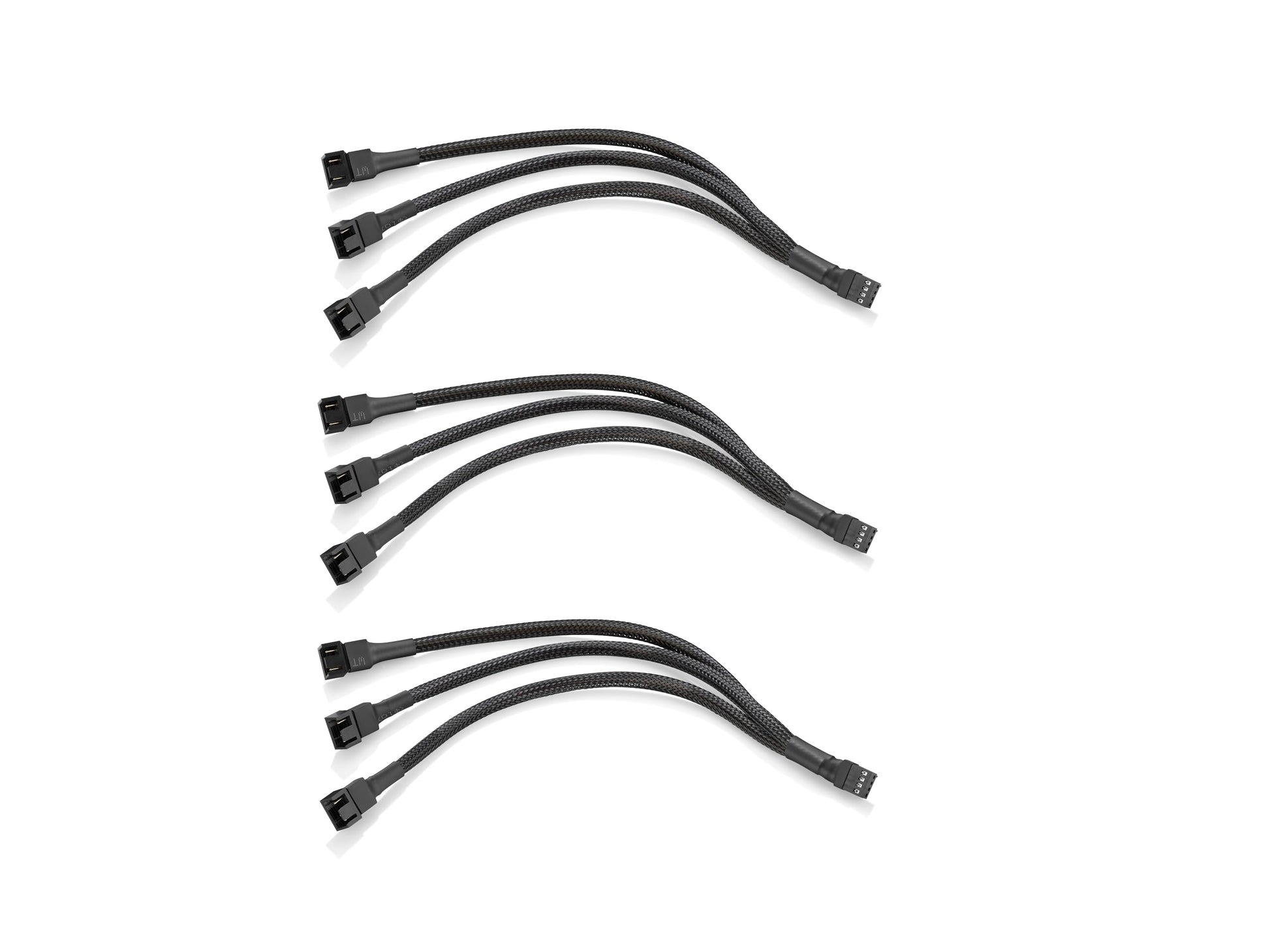 PWM-Lüfter-Splitterkabel, 25 cm, 3er-Pack, Schwarz, 3-fach 4-Pin PC-Lüfter-Verlängerungskabel, CA PWM-Lüfter-Verlängerungskabel, für Computer-ATX-Gehäuse 4-Pin/3-Pin Lüfterkabel