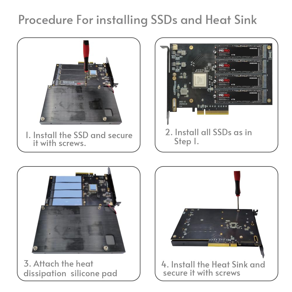 Quad PCIe4.0 NVMe M.2 SSD-Adapterkarte – PCI Express 4.0 x8-Karte unterstützt 4x M.2 NGFF PCIe NVMe SSDs für Mac & PC (IX8024-Switch) – Unterstützt Mainboards ohne Bifurkation (3005K)