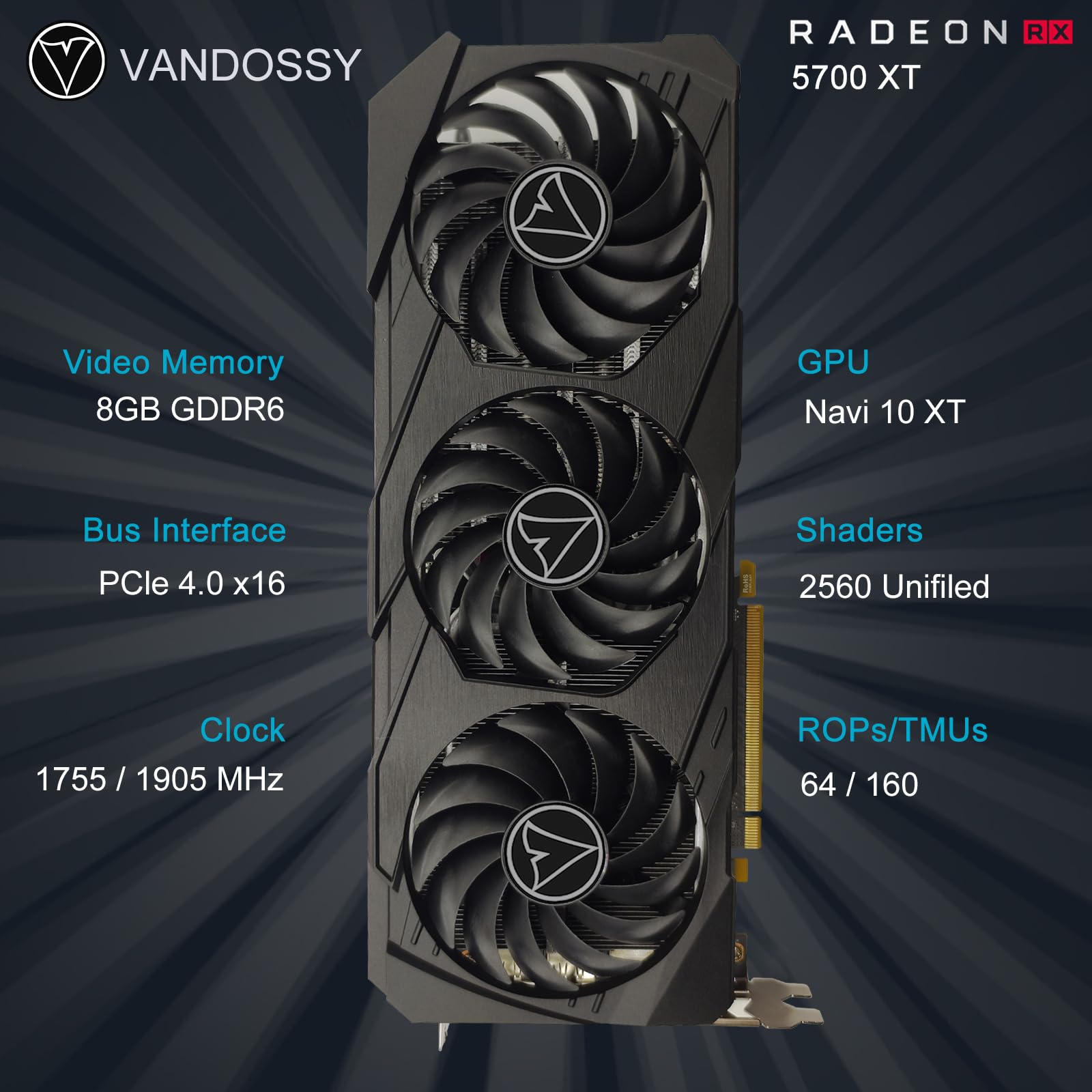 Radeon RX 5700 XT Grafikkarte, 8 GB GDDR6 256-Bit RDNA Architektur 1755/1905 MHz (Basis-/Boost-Takt) DirectX 12 HDMI DP PCIe 4.0 2K PC-Gaming-Grafikkarte für Büroanwendungen (RX 5700 XT - Triple Fan)