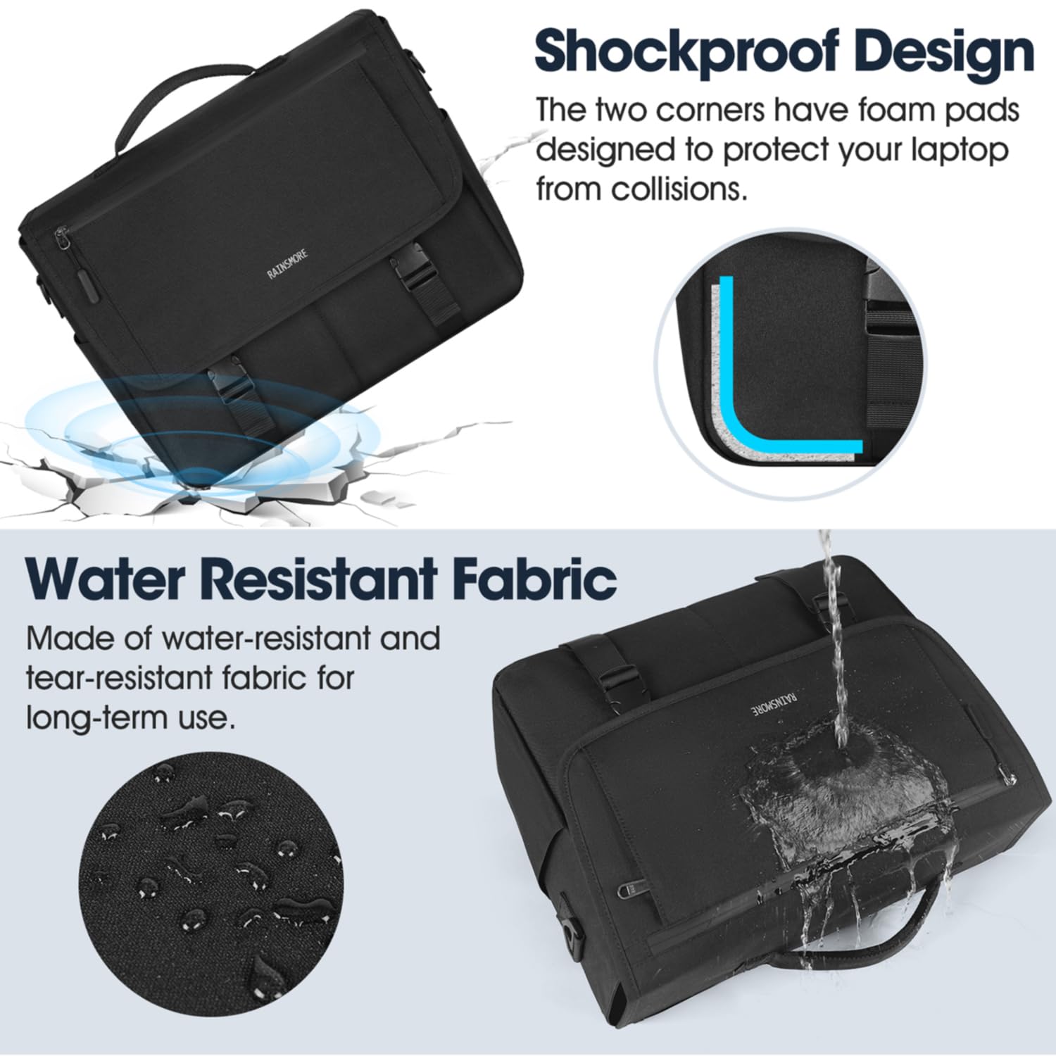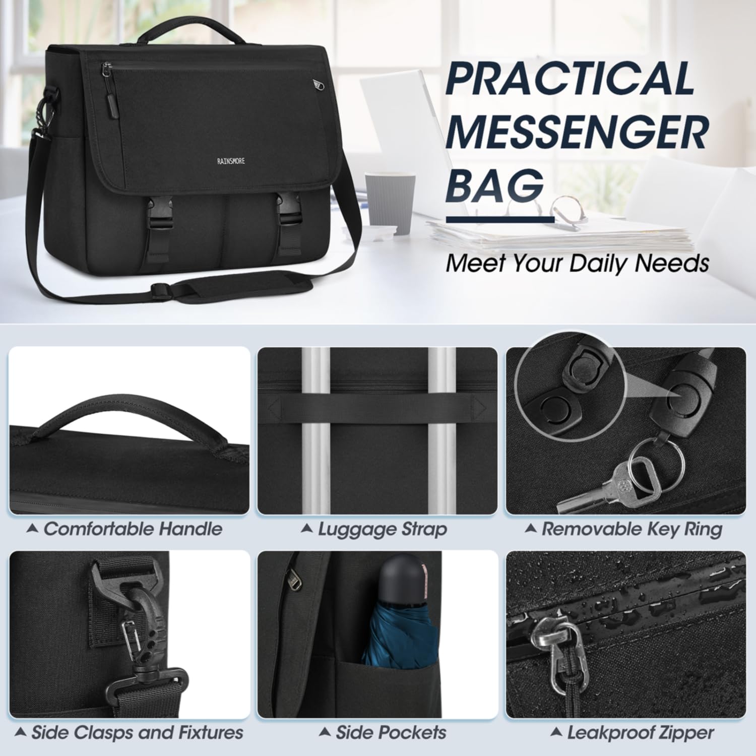 RAINSMORE Messenger Bag für Herren, 15,6 Zoll, wasserabweisend, Laptoptasche, lässige Umhängetasche, große Computertasche für Uni, Büro, Aktentasche, modische Crossbody-Handtasche, Schwarz