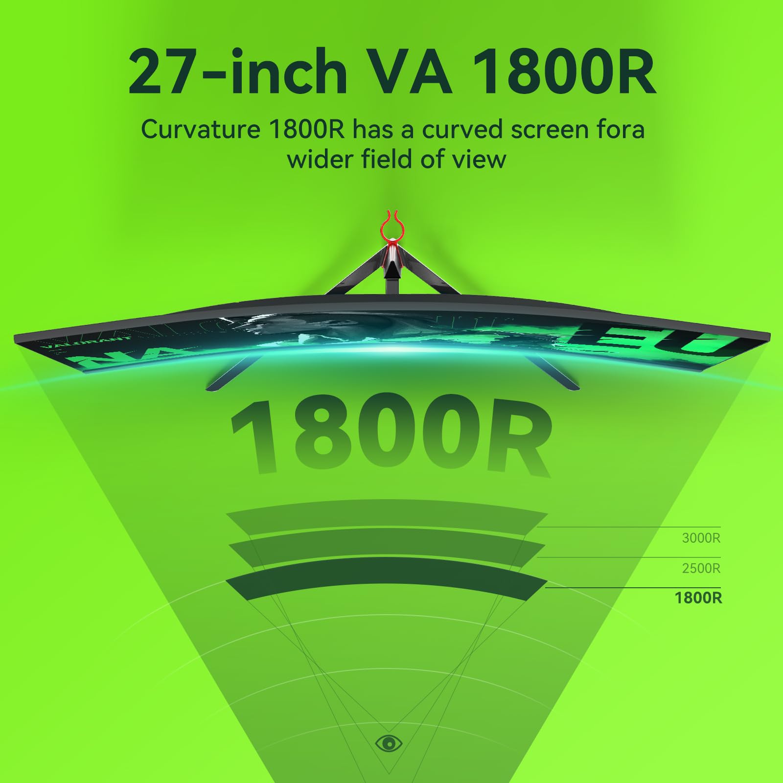 Raywego 27-Zoll-Curved-Gaming-Monitor, 180 Hz, Full HD 1080p, 1800R, FreeSync & Eye-Care, Kontrastverhältnis 4000:1, unterstützt VESA, DP und HDMI für Gaming, Homeoffice