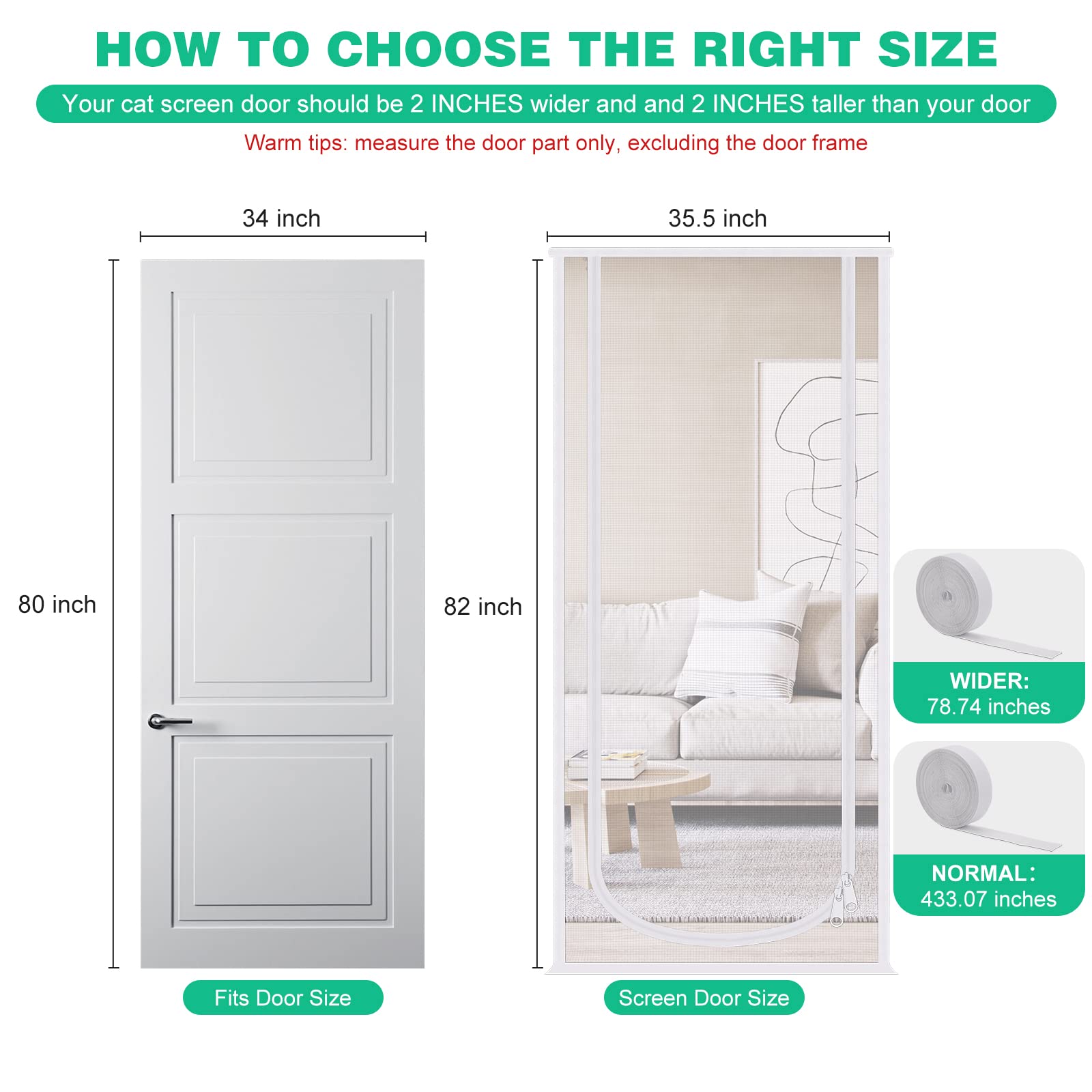Verstärkte Katzenschutztür, 35,5 x 82 Zoll (ca. 90 x 208 cm), robuste, haustiersichere Tür mit beidseitigem Reißverschluss, verhindert, dass Hunde und Katzen aus dem Haus, Schlafzimmer, Wohnzimmer, Küche oder von der Terrasse entkommen.