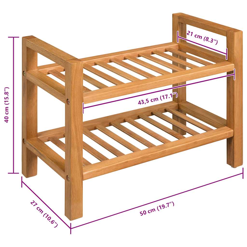 Schuhregal mit 2 Etagen 50x27x40 cm Massivholz Eiche