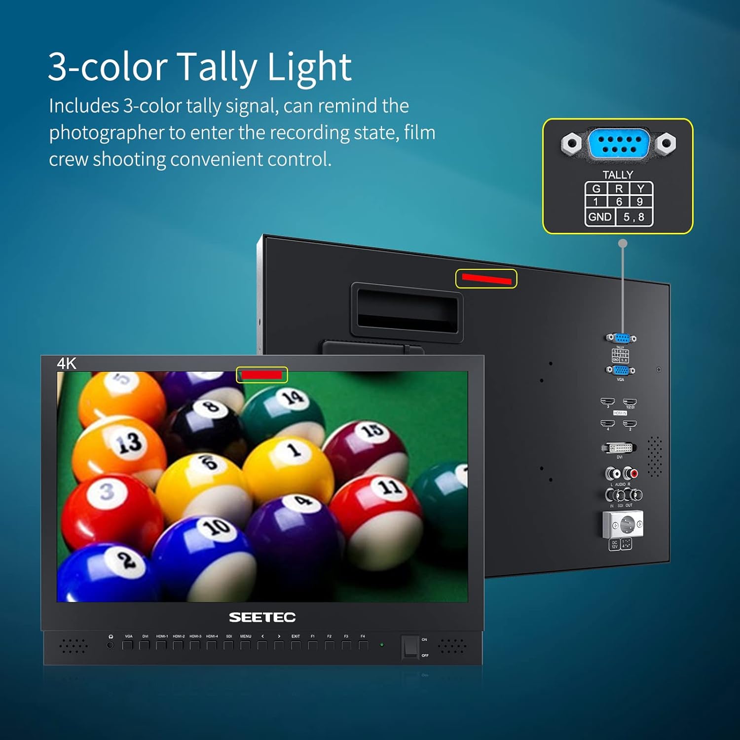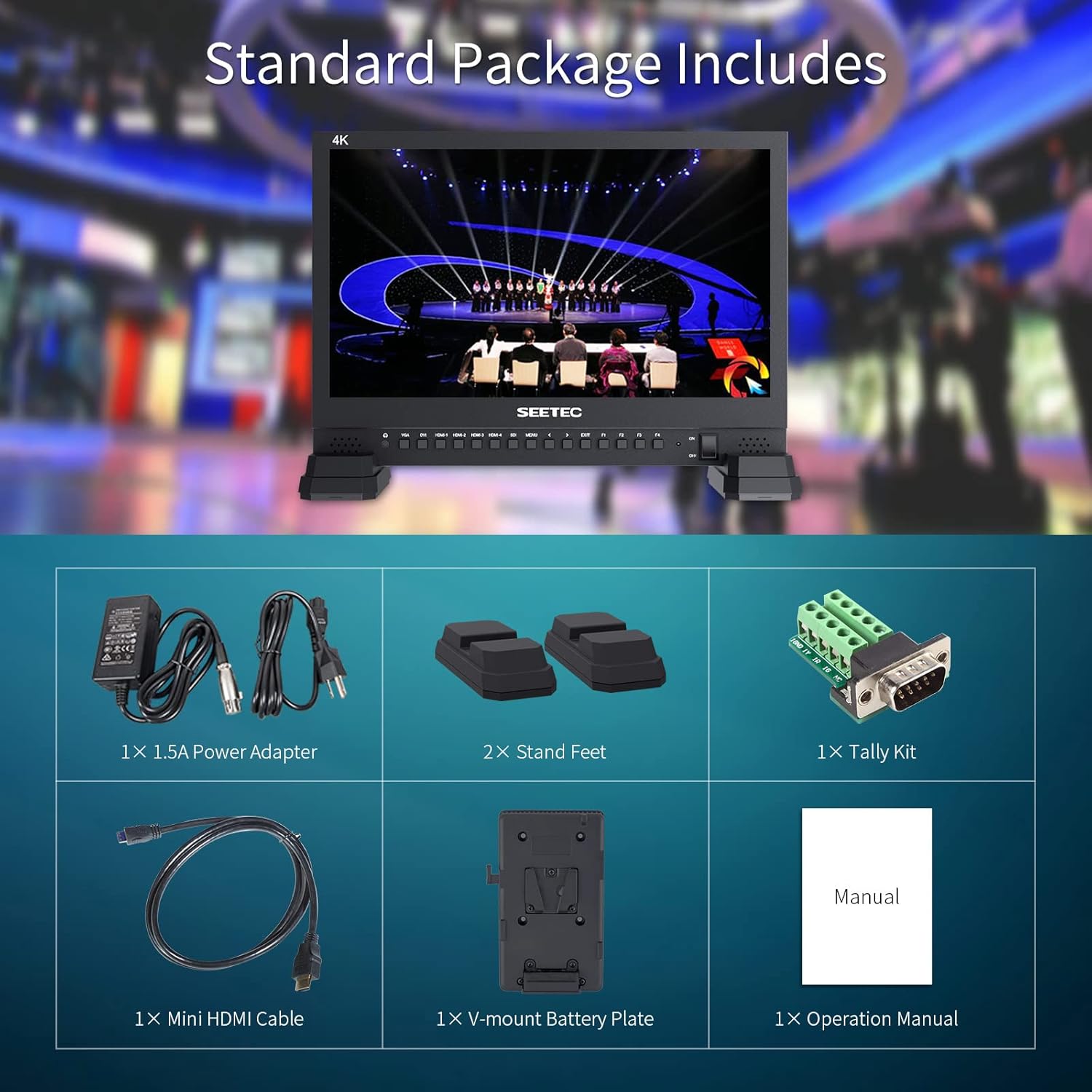 SEETEC 4K156-9HSD 15,6-Zoll-Broadcast-LCD-Monitor mit IPS-UHD-Display (3840 x 2160), SDI-Ein- und -Ausgang, 4 HDMI-Eingängen und Quad-Split-Display