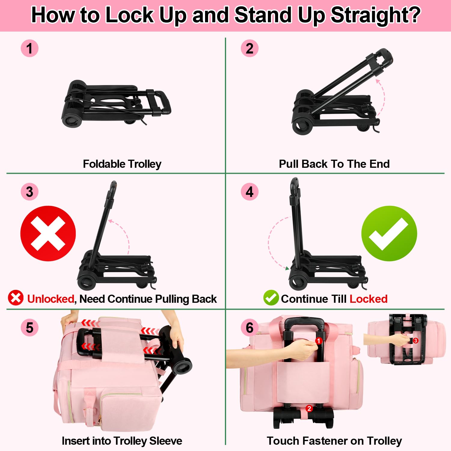 SIYNPAV Rollende Lehrertasche mit Akkordeon-Aktenorganizer, USB-Anschluss und 15,6-Zoll-Laptopfach, rollbare Lehrertasche mit abnehmbarem Trolley zur Aufbewahrung von Unterrichts- und Büromaterialien (Pink)