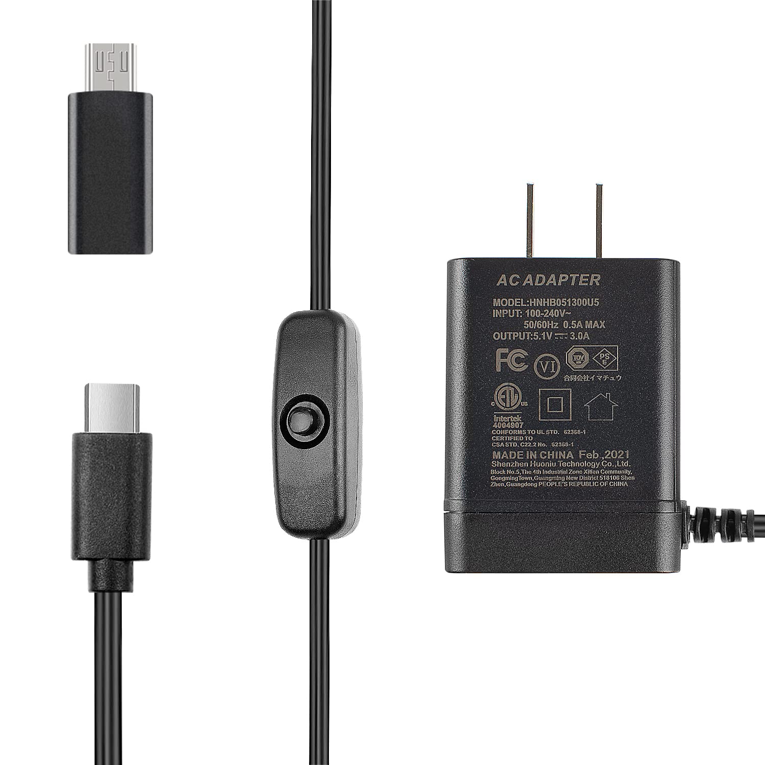 Smraza 5,1V 3A Netzteil, kompatibel mit Raspberry Pi 4, mit Ein-/Ausschalter, USB-C Pi 4 Ladegerät, Raspi 4B Adapter für Raspberry Pi 4 Modell B 1GB 2GB 4GB 8GB Version