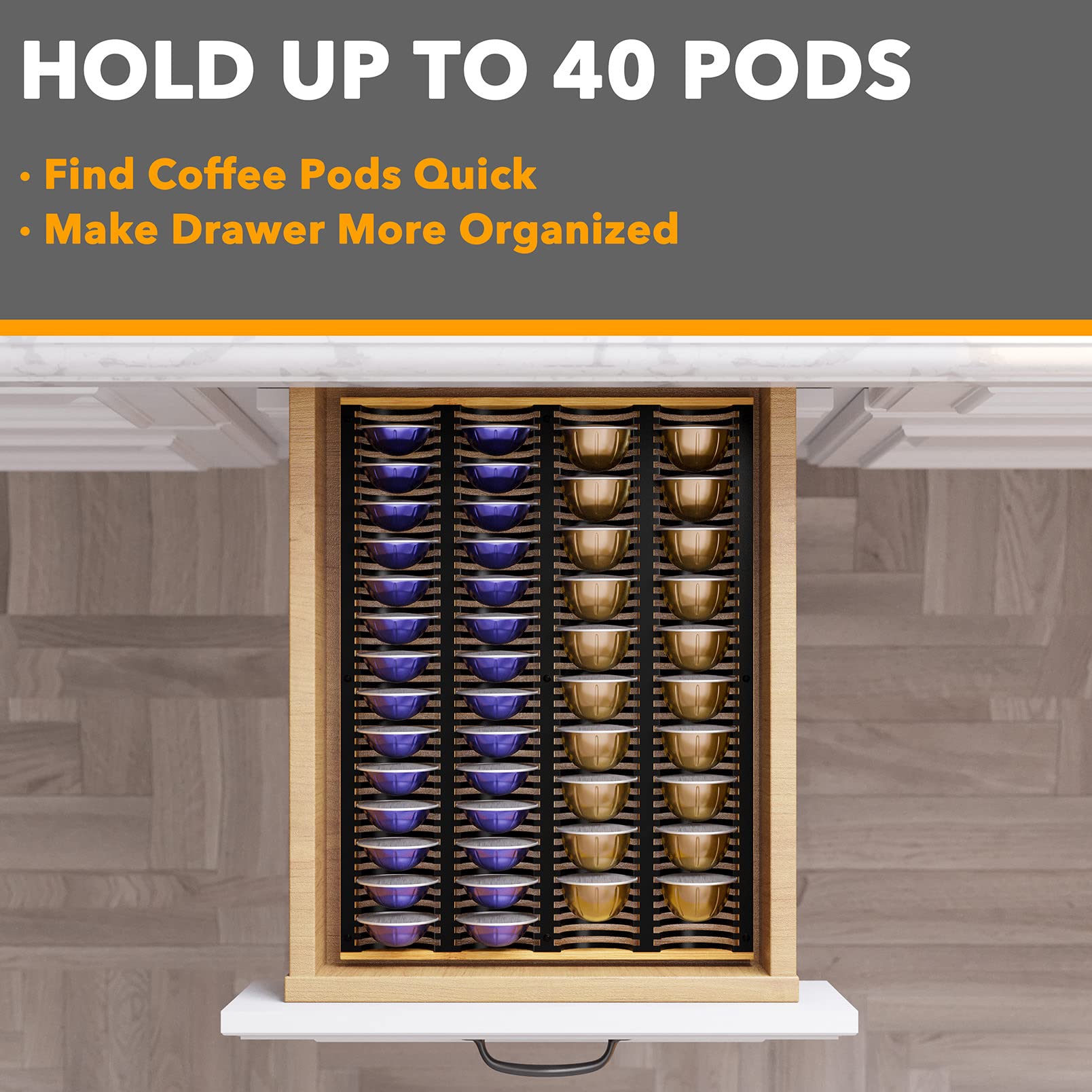 SpaceAid Schubladenorganizer für Nespresso Vertuo Kapseln, Bambus-Halterung und Ablage für Nespresso Vertuo, kompatibel mit 40 großen oder 52 kleinen Vertuoline Kapseln (Schubladeneinsatz)
