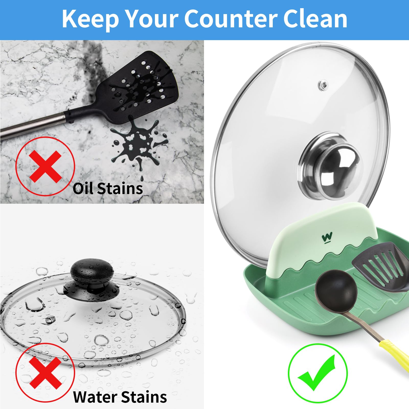 Löffel- und Deckelablage – 2er-Pack Löffelablage mit Deckelhalter, saubere und tropffreie Löffelablage für Herdplatten, hitzebeständige Utensilienablage für Löffel, Topfdeckel, Pfannenwender, Küchenutensilien, Gabeln (Grün)