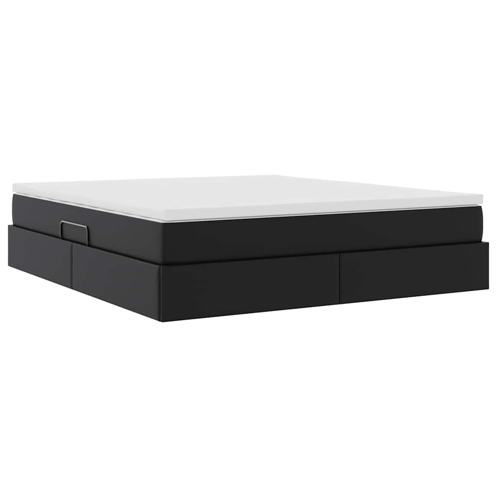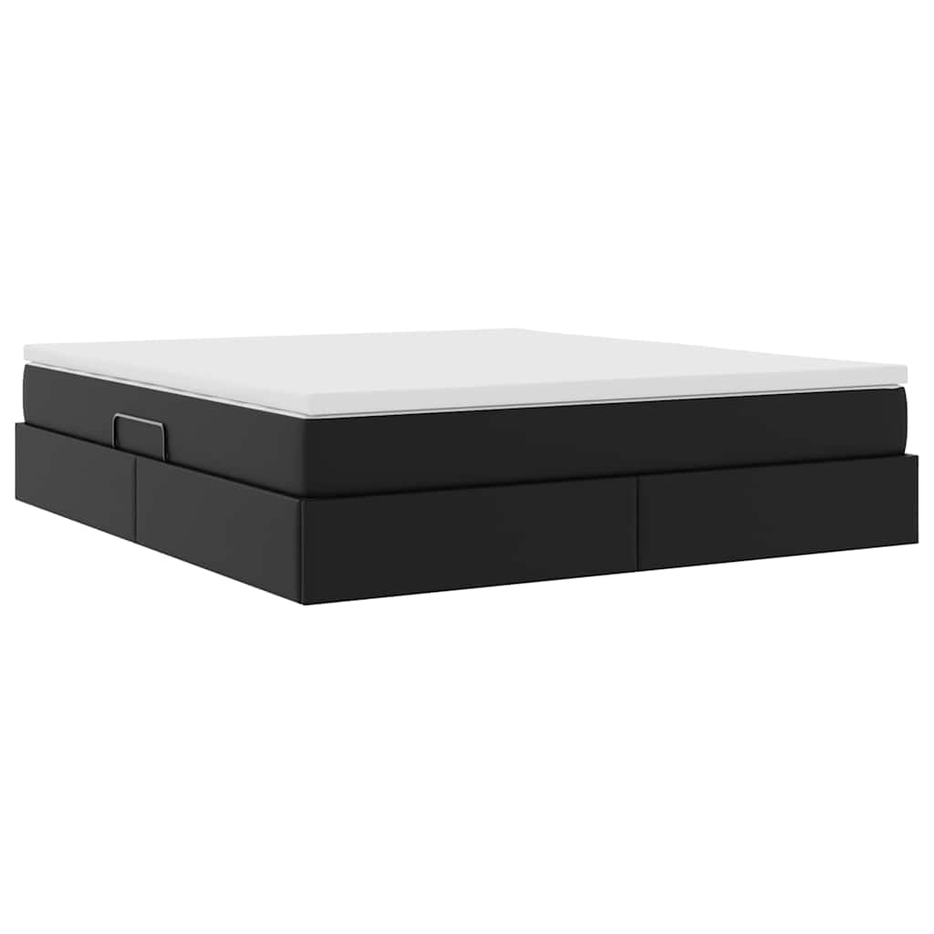 Aufbewahrungsbett mit Matratze Schwarz 160 x 200 cm Kunstleder