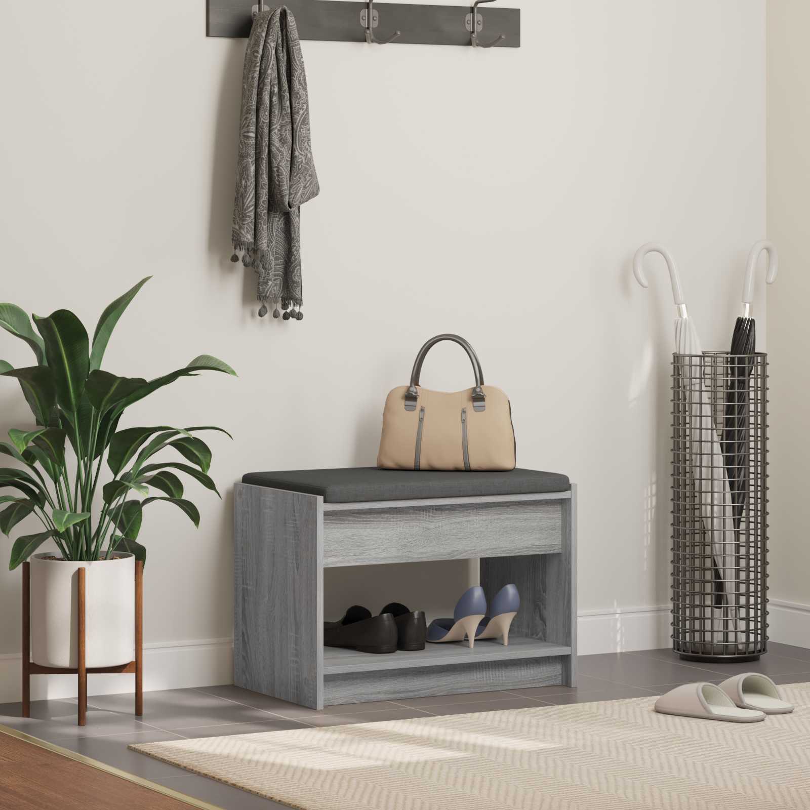 Flurbank mit Kissen mit Regal Graues Sonoma 63 x 38 x 45 cm