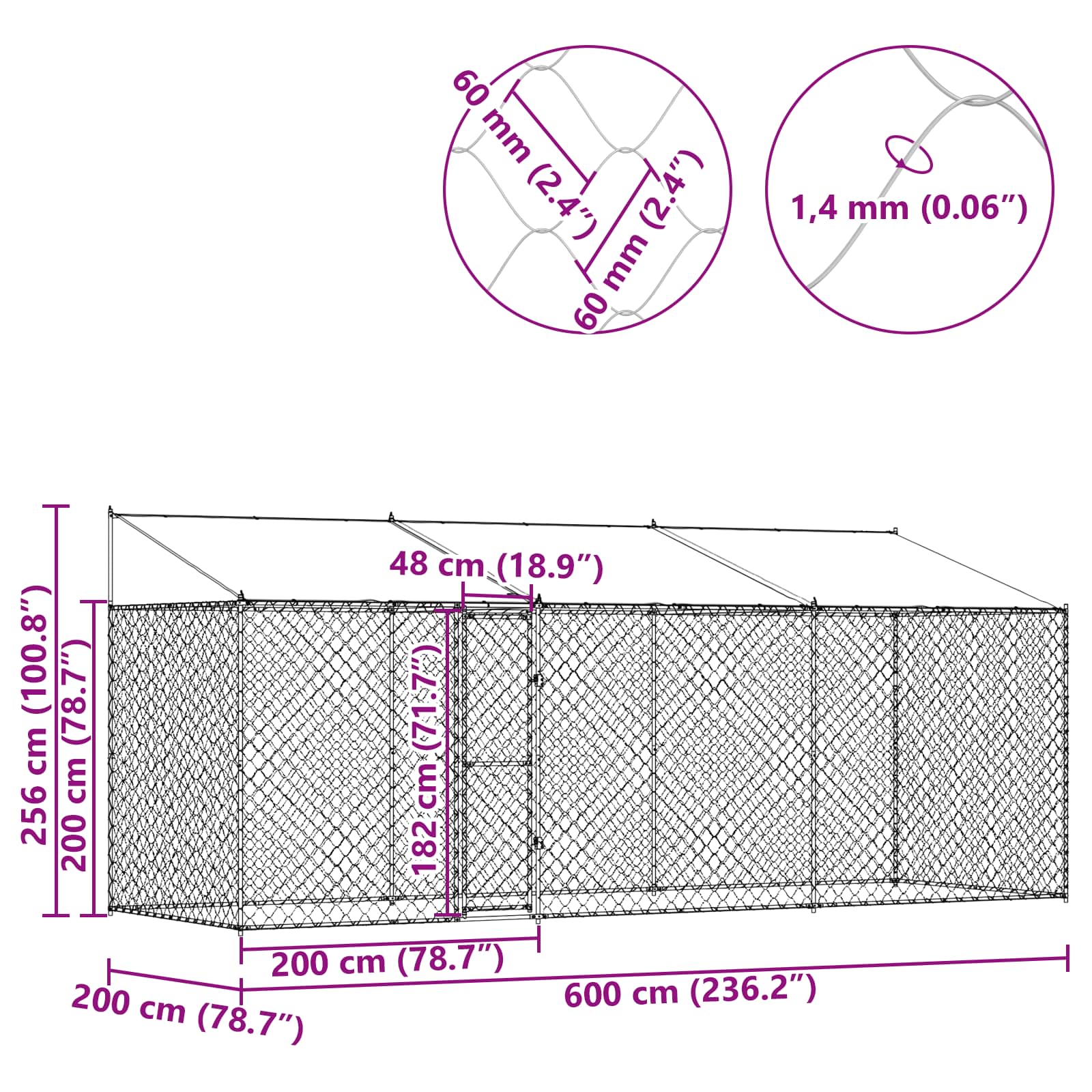 Hundekäfig mit Dach Silber 600 x 200 x 256 cm Stahl und PE