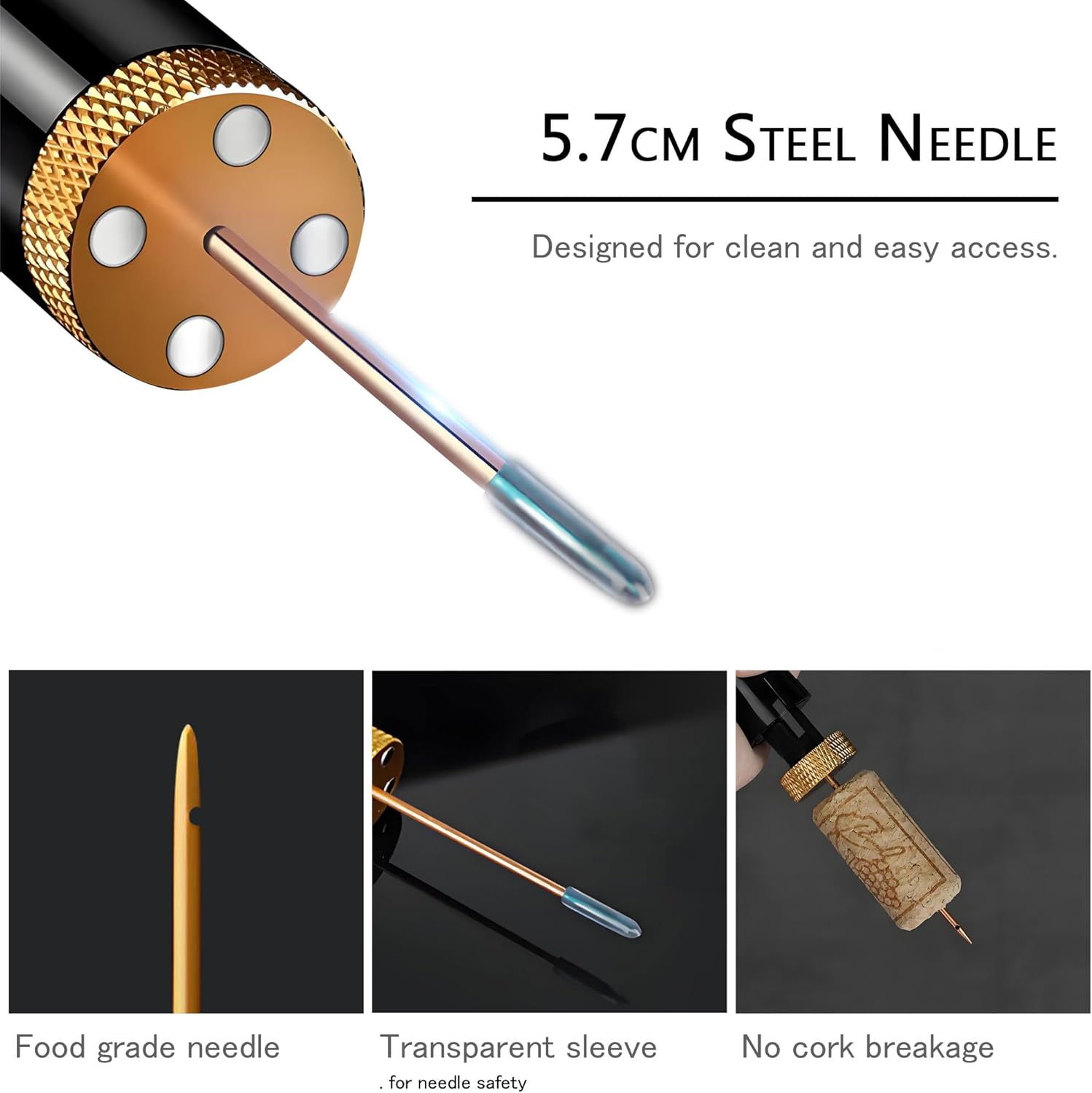- [Effizienter 7-Sekunden-Luftpumpen-Weinöffner] Dieser Korkenzieher nutzt das Vakuumprinzip: Einfach die Nadel einführen, ein paar Mal herausziehen, und der Korken ist draußen. So öffnen Sie die Flasche schneller und sparen Kraft. In nur 7 Sekunden ist der Korken entfernt.
