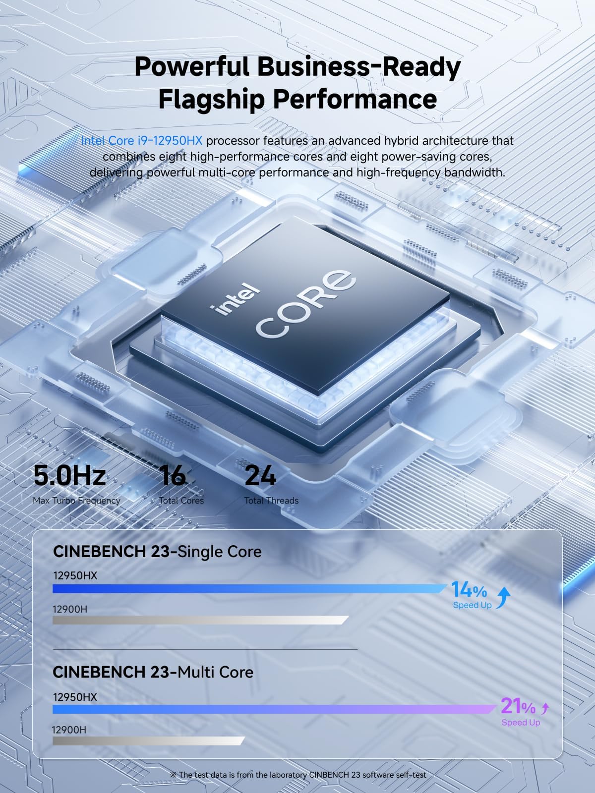 Intel Core i9-12950HX Prozessor, 16 Kerne (8 Leistungskerne + 8 Effizienzkerne) / 24 Threads, maximale Turbo-Frequenz 5,0 GHz