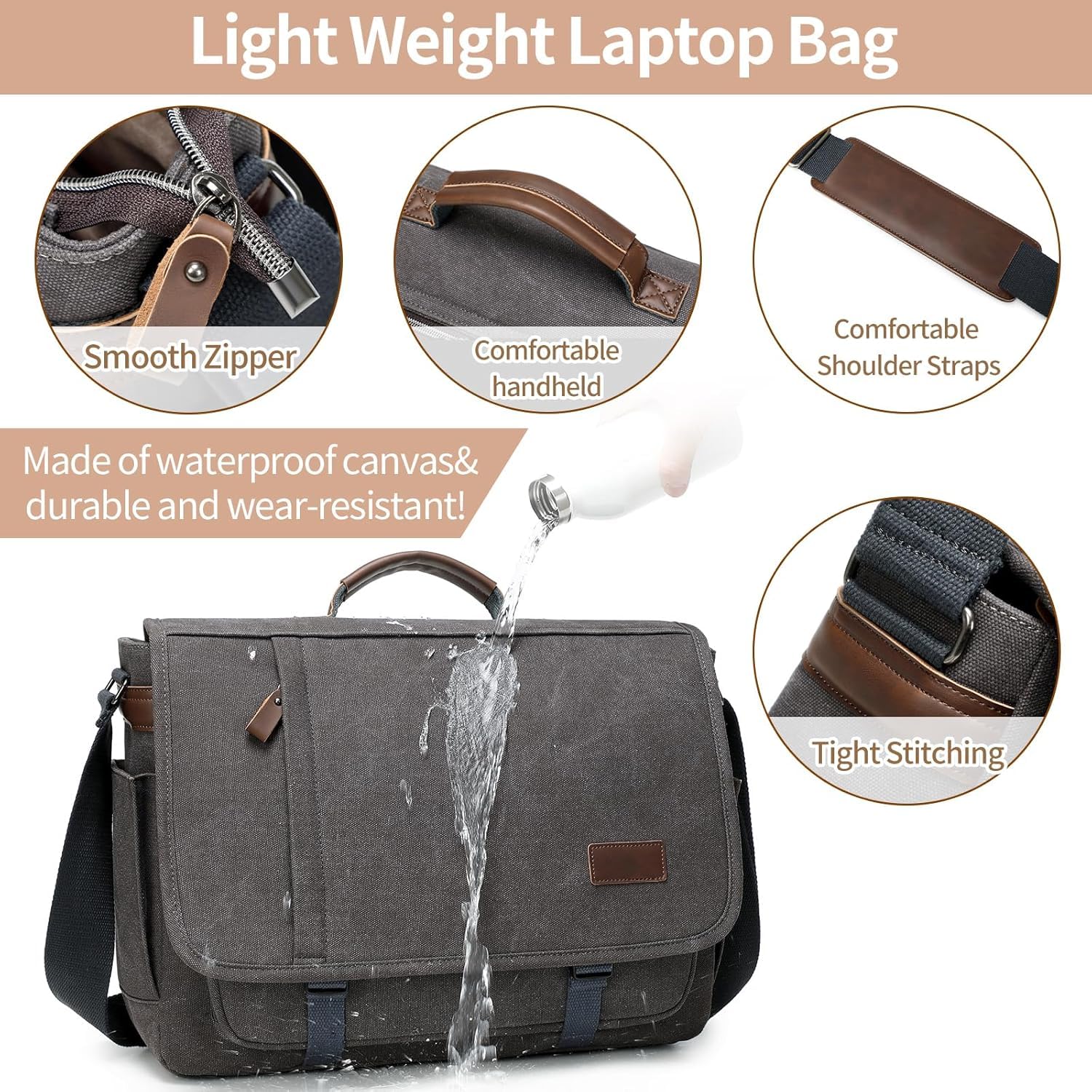 PPOBOW Canvas Messenger Bag für Herren, wasserdichte Business-Tasche für Herren, Vintage Canvas Laptoptasche (Grau)