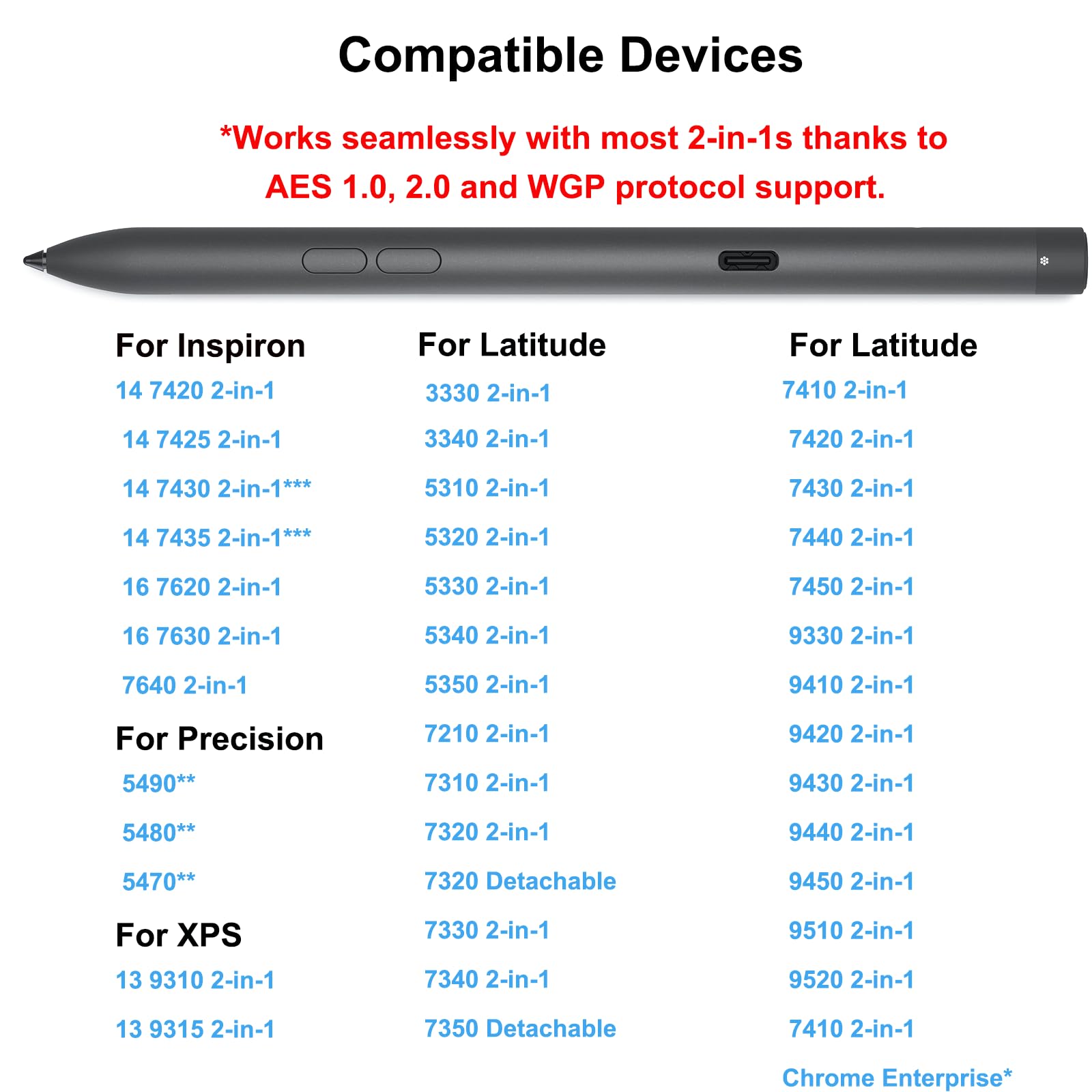 Wiederaufladbarer Premium-Aktivstift für Dell Active Pen PN7522W Laptops, kompatibel mit Dell 2-in-1-Laptops Inspiron 7420/7425/7430/7435/7620/7630 und Latitude 5300/5340/7210/7320/7410/9330/9520