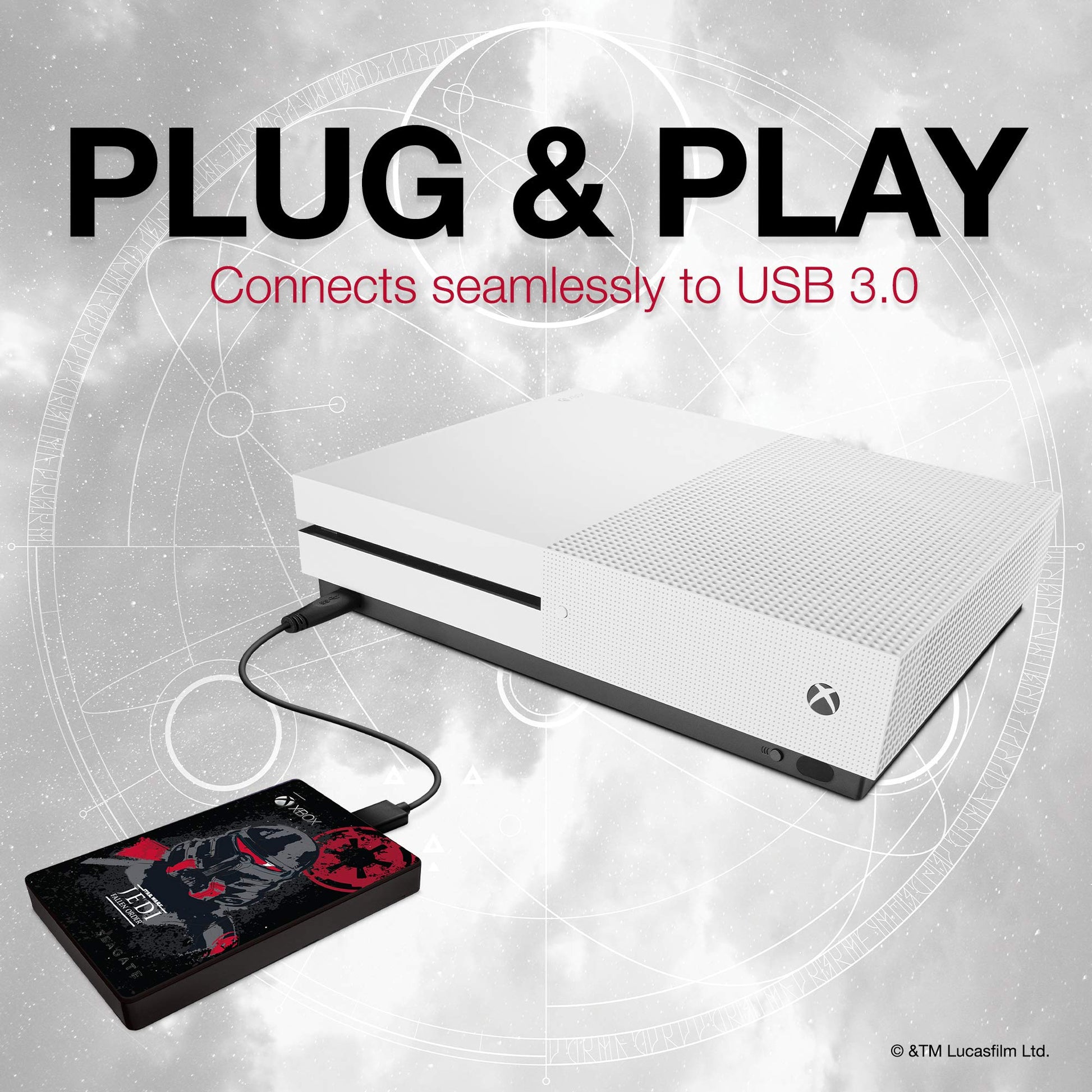 Erschaffe dir ein Imperium an Spielen mit der offiziell lizenzierten Star Wars Jedi: Fallen Order-Spiel-Drive für Xbox. Sie besticht durch ihr kultiges Purge-Trooper-Design, 2 TB Speicherplatz für über 50 Spiele und dieselbe HDD-Firmware wie die Xbox One-Konsole für ein reibungsloses Spielerlebnis. Absolut portabel, absolut Plug-and-Play: Einfach an einen beliebigen USB-Anschluss der Xbox One anschließen – automatische Erkennung und schnelle Installation.