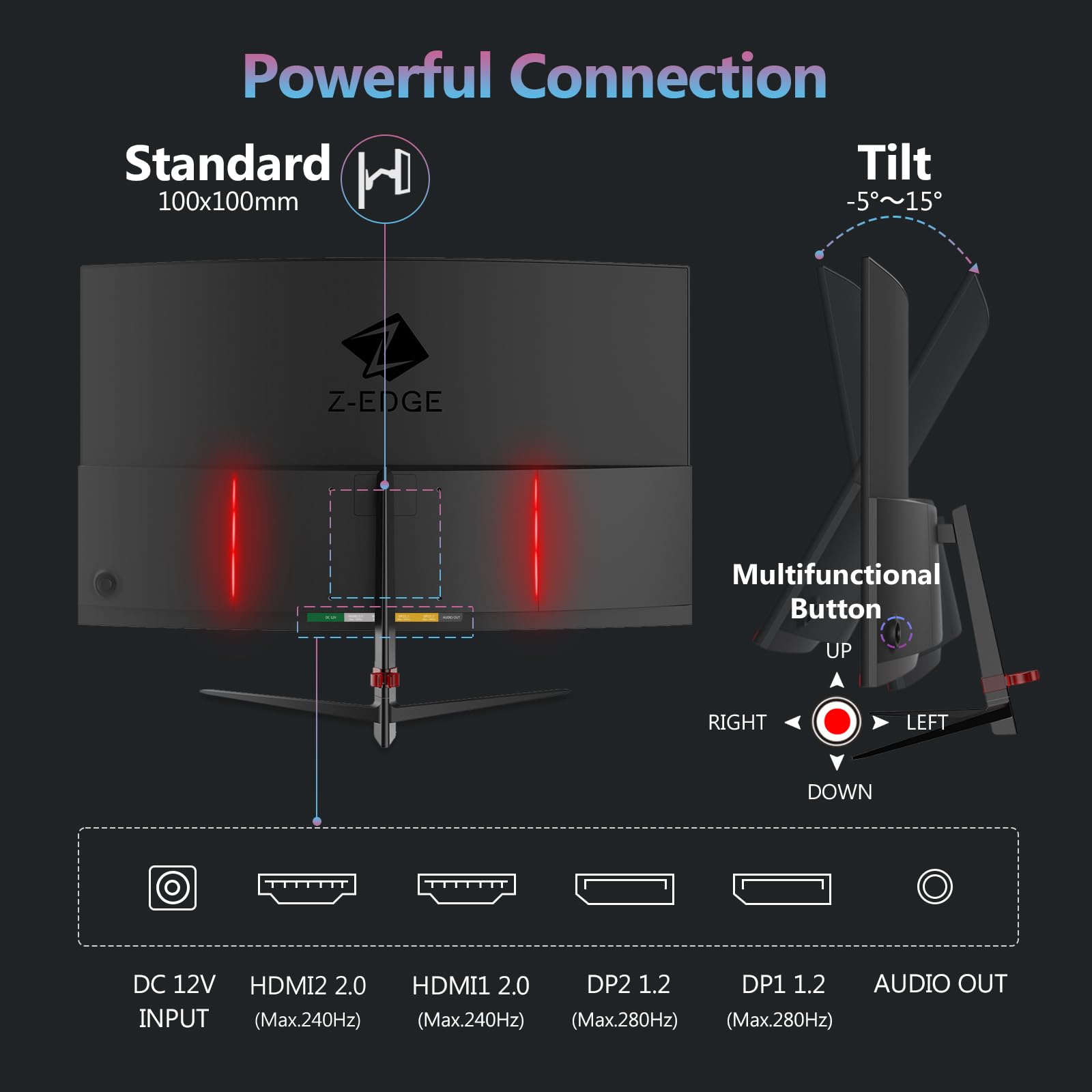 - Leistungsstarke und stabile Anschlüsse: Dank zweier HDMI-Eingänge und eines DisplayPort-Anschlusses können Sie mehrere Geräte an den Monitor anschließen. Mit einer beeindruckenden Bildwiederholfrequenz von bis zu 240 Hz bietet der Gaming-Monitor Nutzern ein professionelles Spielerlebnis.