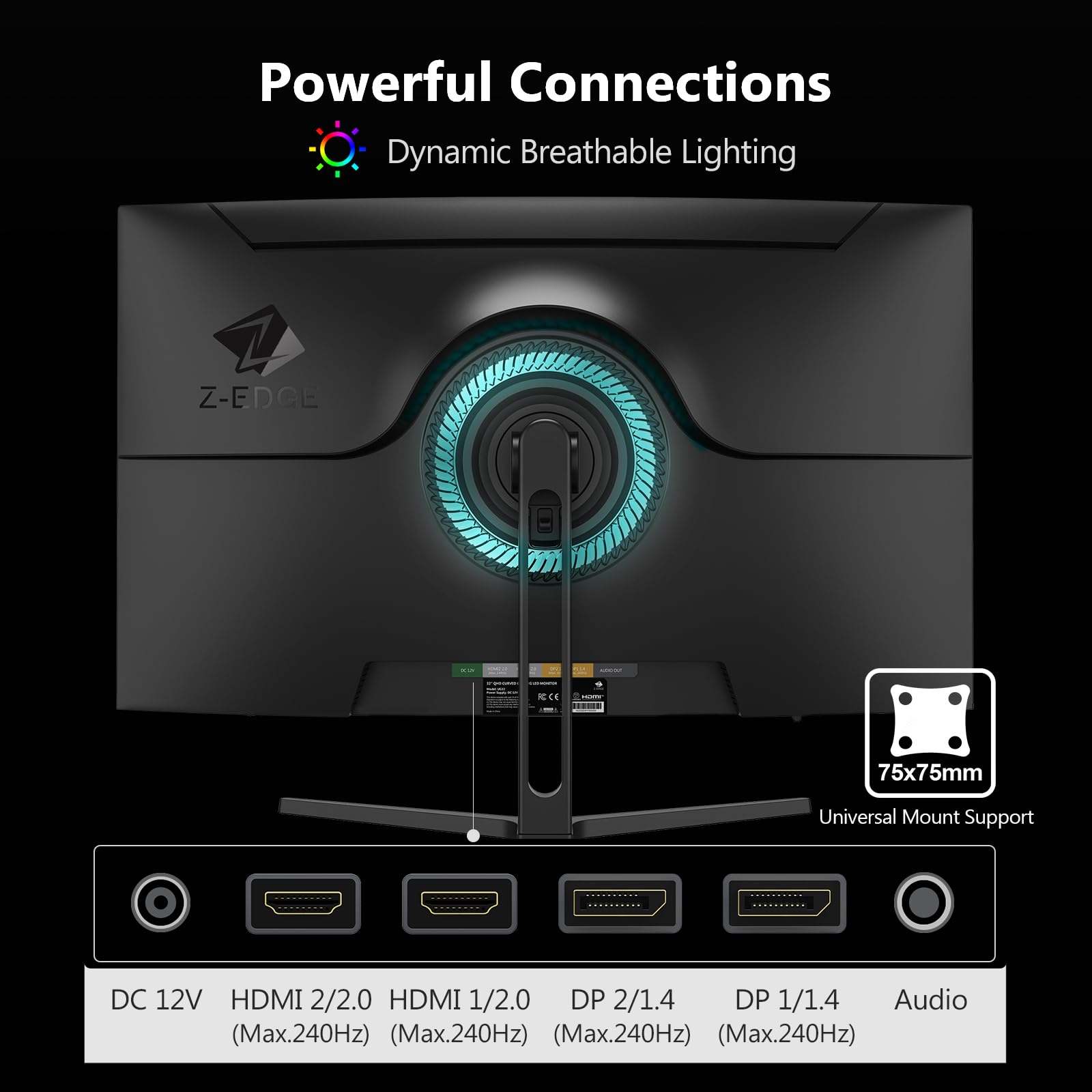 Z-Edge 32-Zoll-Curved-Gaming-Monitor, FHD 1080P 240Hz Curved-Monitor, 1500R Computermonitor, MPRT 1ms Monitor, UG32P 2x DP 1.4 Anschlüsse und 2x HDMI 2.0 Anschlüsse