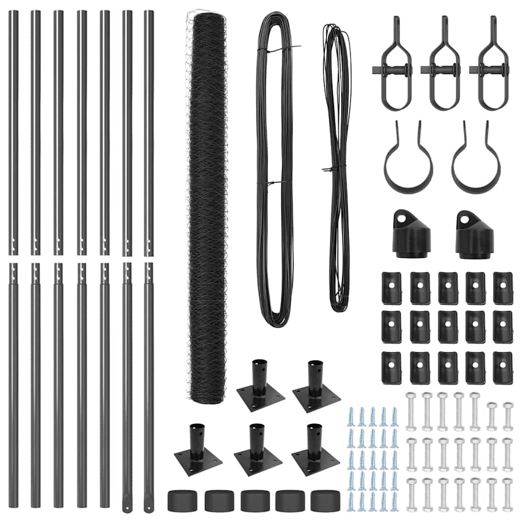 Zaunpfosten Grau 10 x 1,5 m (36 mm Netz) Stahl und PVC